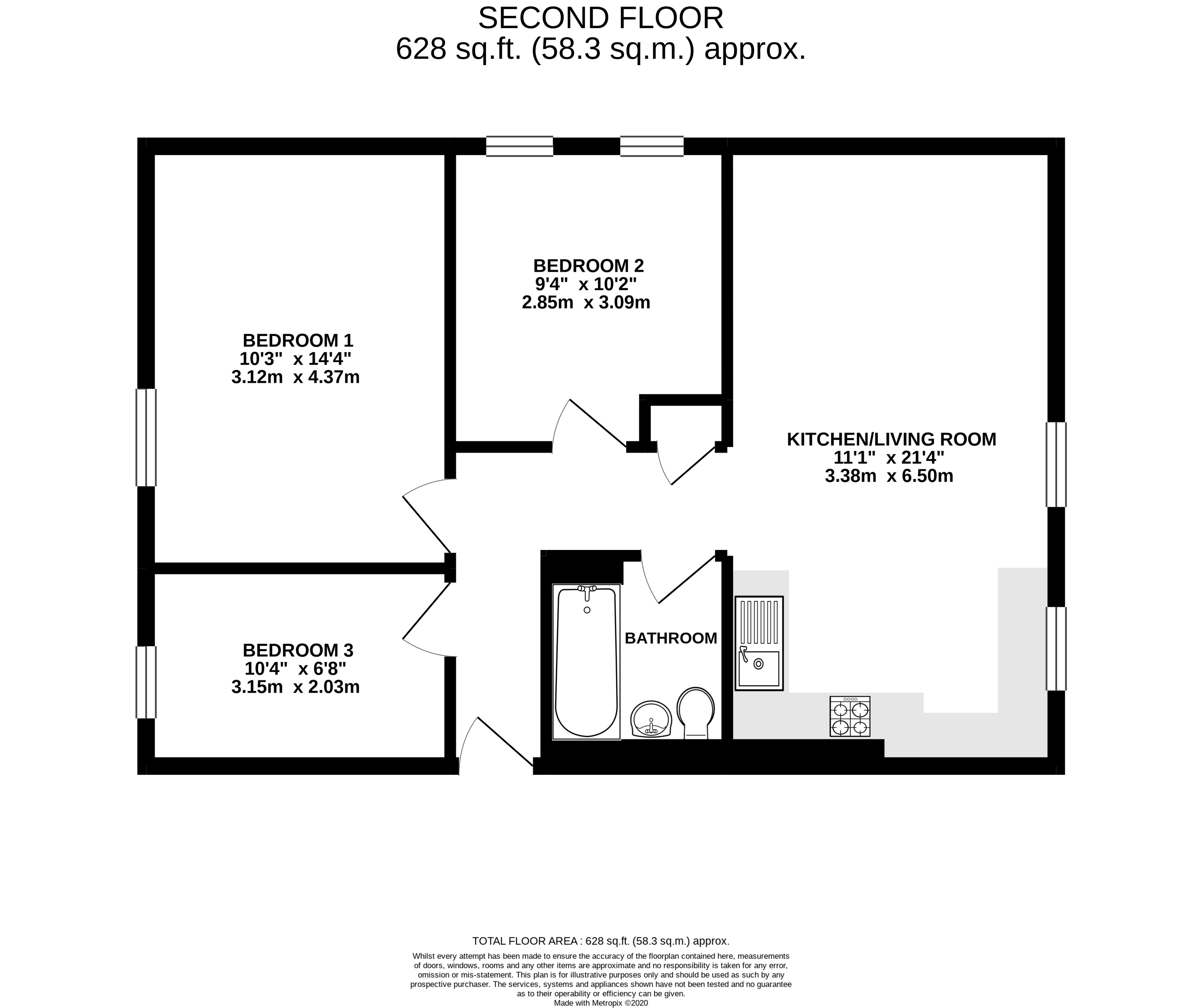 There are three well-sized bedrooms, and modern three-piece bathroom.