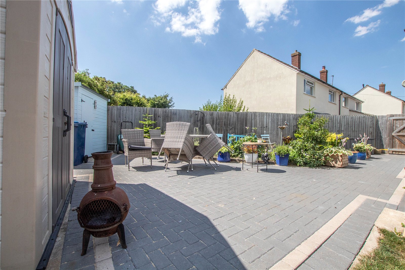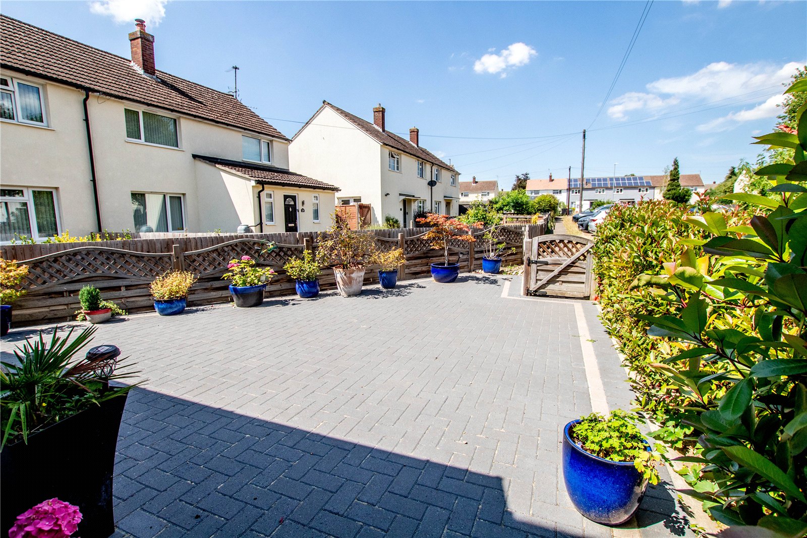 The property is situated at the end of the cul de sac in a traffic free location. To the front is a brick block low maintenance garden with shrubs and borders along with gated access leading to the rear. The rear garden is enclosed with an area of lawn, paved patio area and extensive brick block paving. There are trees, shrubs and borders along with two garden sheds.