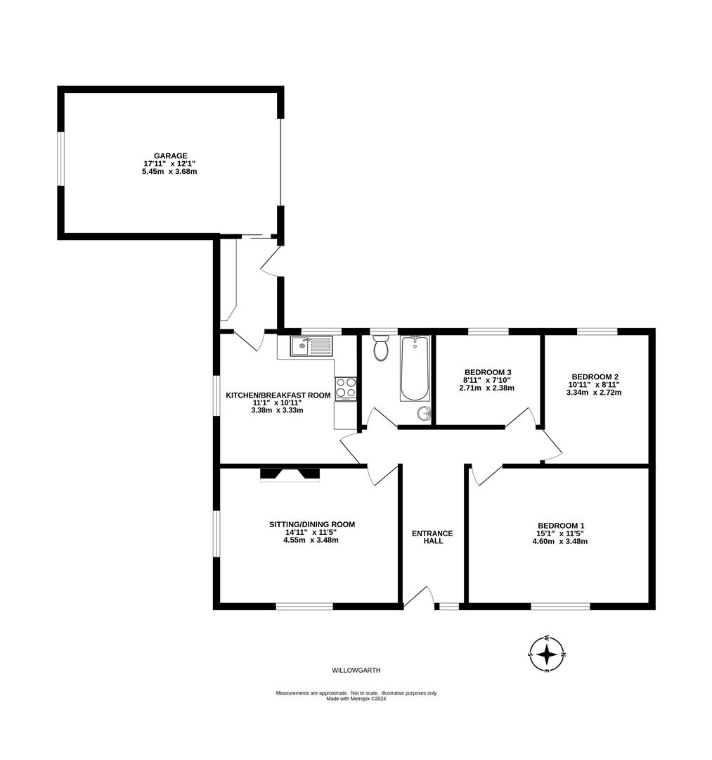 Willowgarth Bungalow - Willowgarth is a spacious 3 bedroom bungalow in spacious lawn gardens. The accommodation benefits from uPVC double glazing and a oil fired central heating and briefly comprises: Entrance hall; corridor and doors lead off to, Sitting / dining room; a dual aspect room , windows to the front and side, open fireplace, Bedroom 1; a large double room, window to the front, Bedroom 2; a double room, window to the rear overlooking the garden & land, a double room, window to the rear. Family bathroom; Wash basin, w/c and bath. Kitchen / breakfast room; a dual aspect room, fitted wall and base units, space for a cooker. Rear entrance / boot room; fitted base units, door to the garage.
