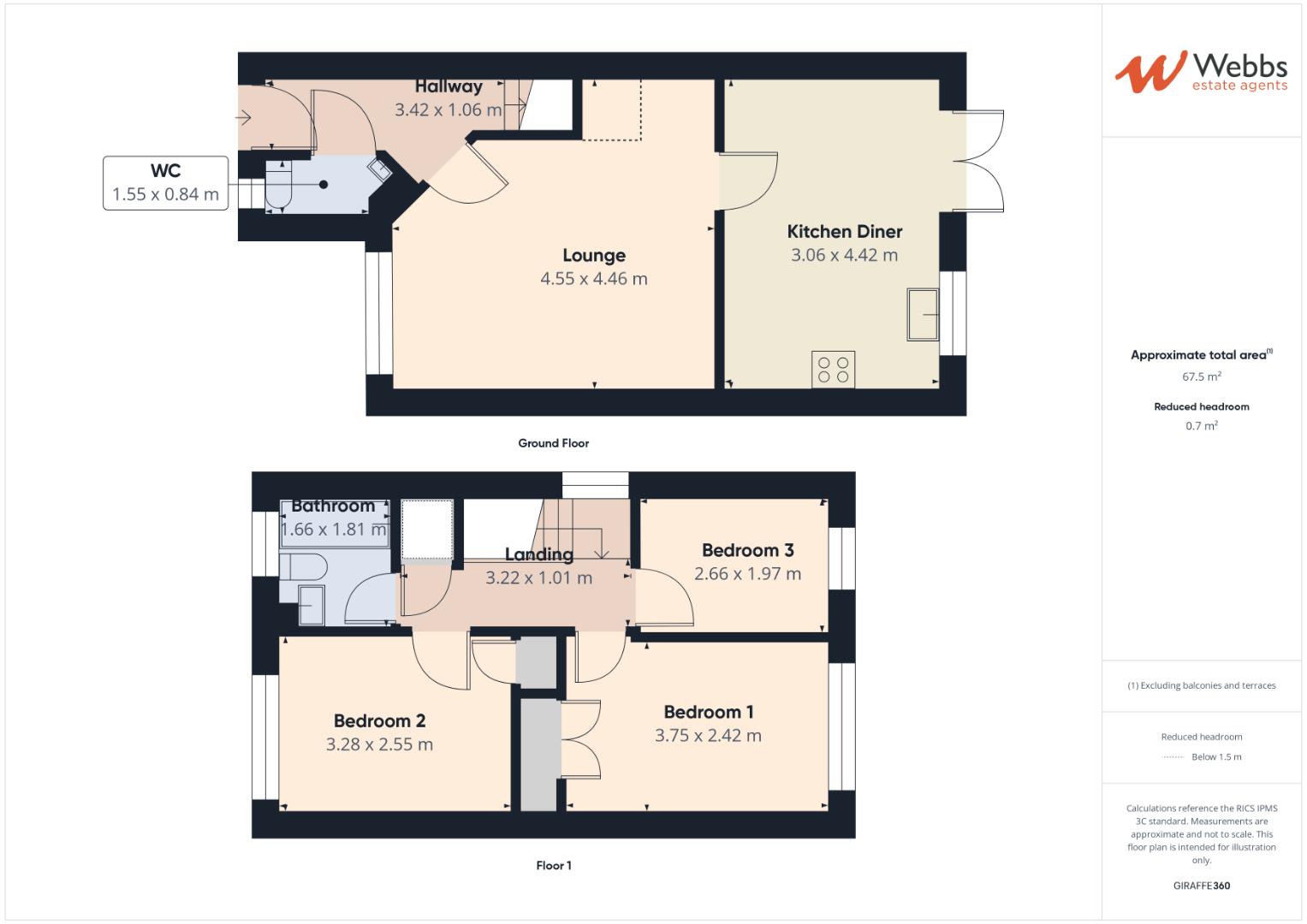 Guest Wc - 1.55 x 0.84 (5'1" x 2'9") -