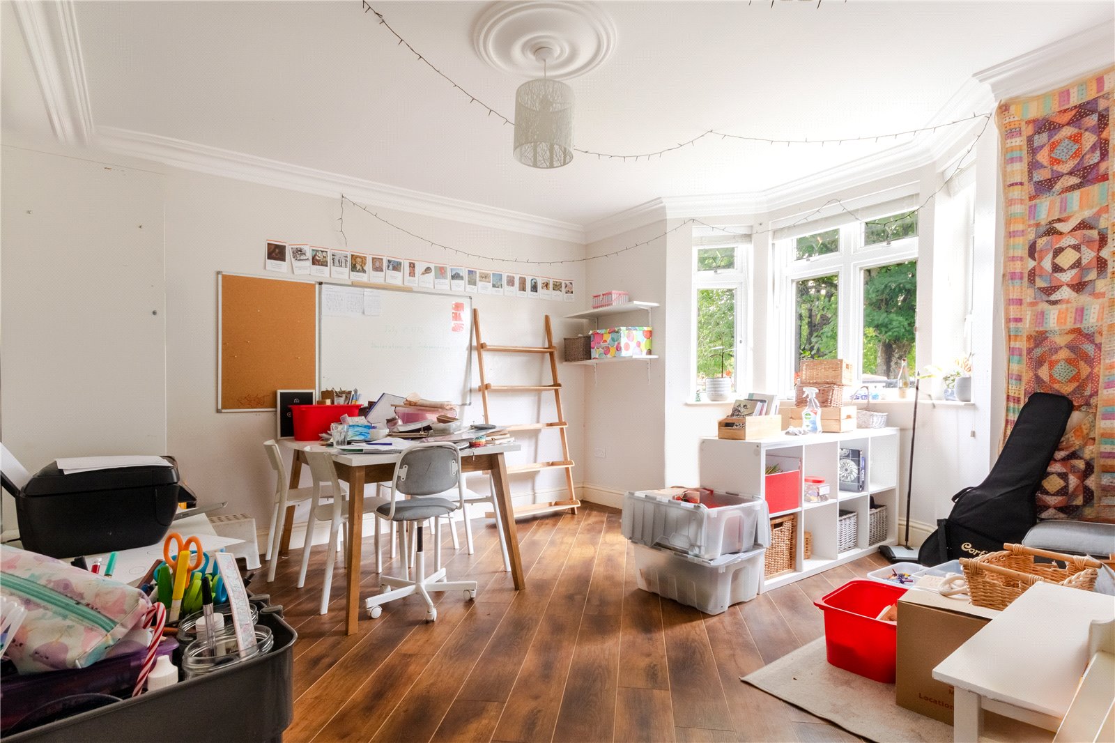 Playroom 14'5" (4.39m) x 14'4" (4.37m) into bay Overlooking the entrance approach, quality flooring, radiator.