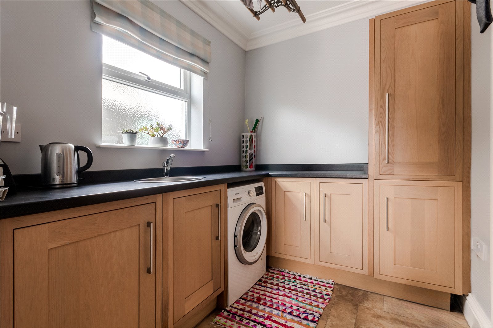 Utility Room 15'4" (4.67m) x 6'7" (2.01m) Round nosed display surface with a wealth of base cupboards, plumbed for automatic washing machine, lobby area with hanging cloaks area, double glazed door leading to rear.