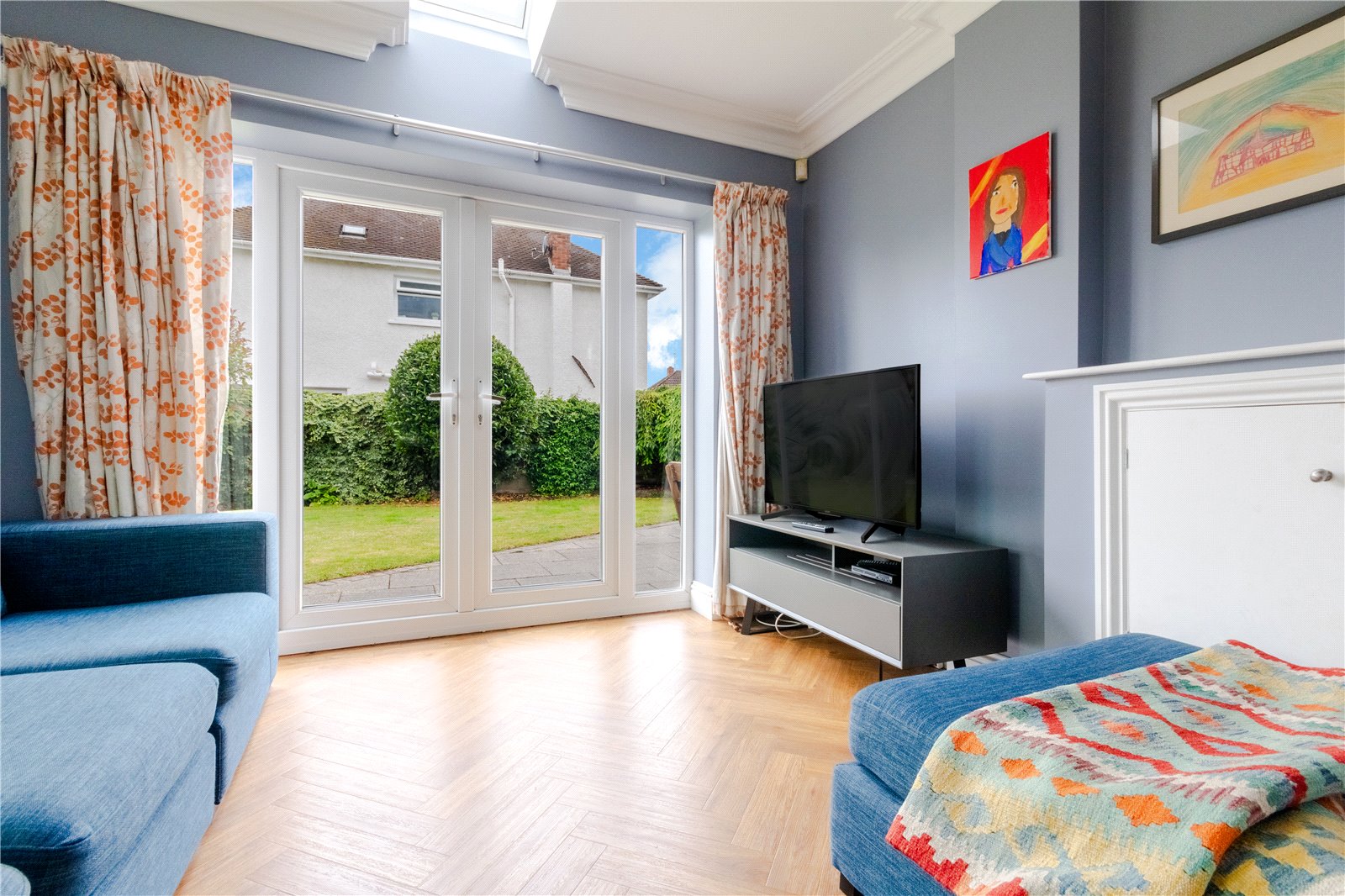 Lounge 25'0" (7.62m) x 11'11" (3.63m) into bay Enjoying open views to the tree lined Whitchurch Common, feature wood burner with ornate wooden surrounds and mantel, quality flooring, feature circular coloured leaded light triple glazed windows to side, French doors with leaded light windows opening to rear sitting room.
