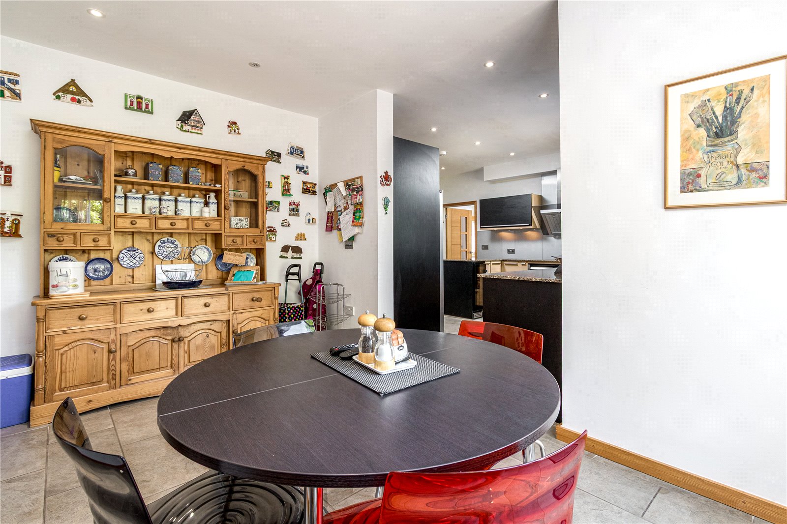 Dining Room 14'5" (4.39m) x 13'10" (4.22m) Overlooking the entrance approach, quality tiled flooring, oak sliding twin doors to reception hall with bevelled glass inserts, concealed lighting, additional connecting door to kitchen.