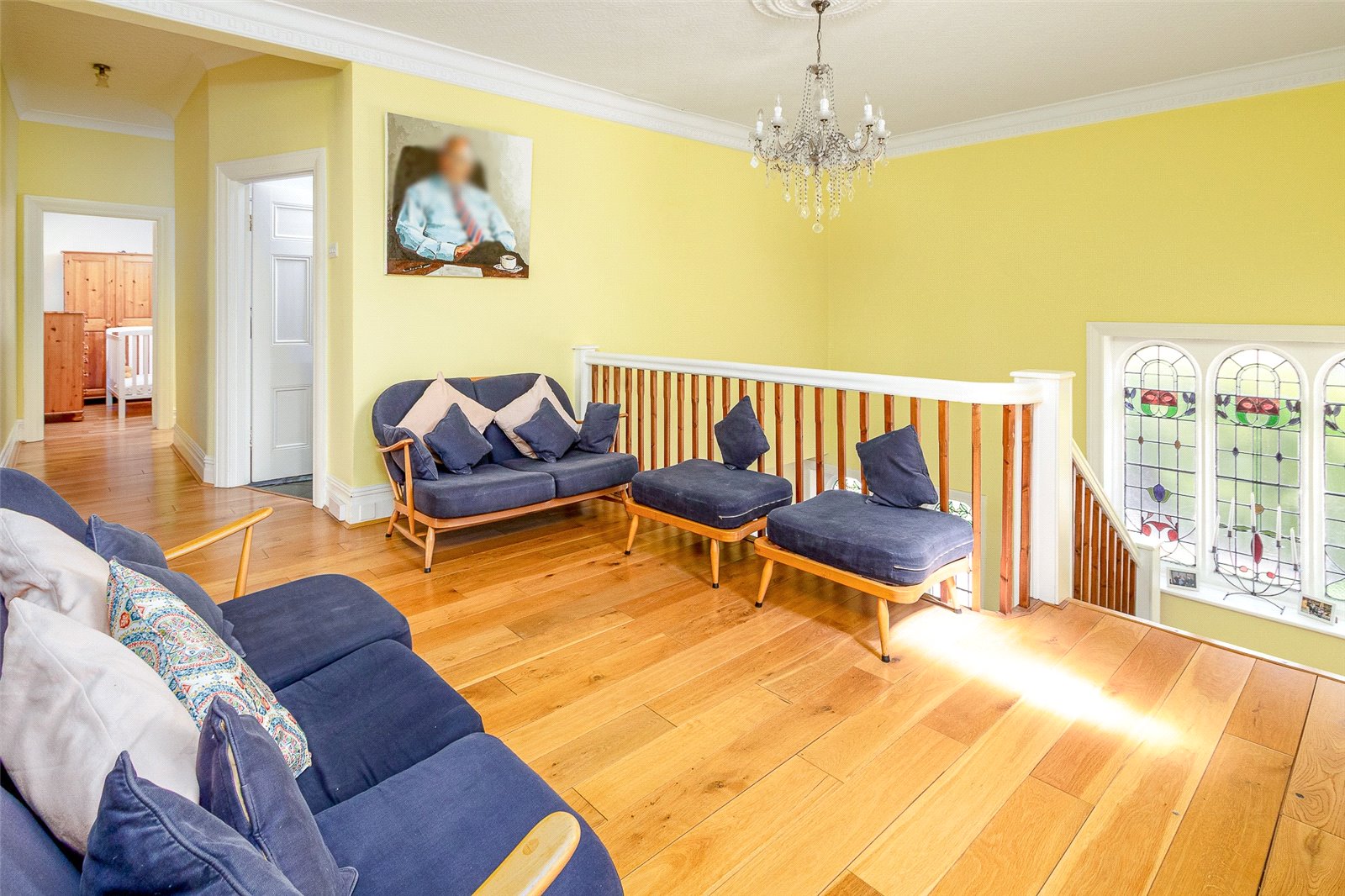 Sitting Room 19'0" (5.79m) x 17'10" (5.44m)    Double glazed windows with coloured leaded light windows above