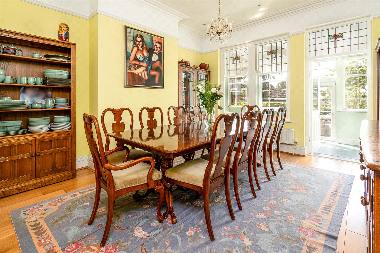 Dining Room 15'1" (4.6m) x 13'1" (3.99m)    With sashcord windows and coloured leaded light windows above,