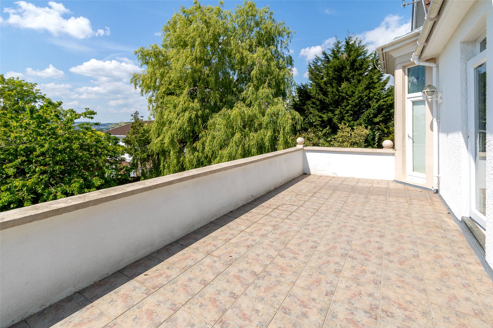 the rear balcony terrace, natural floor board flooring, panelled radiator.