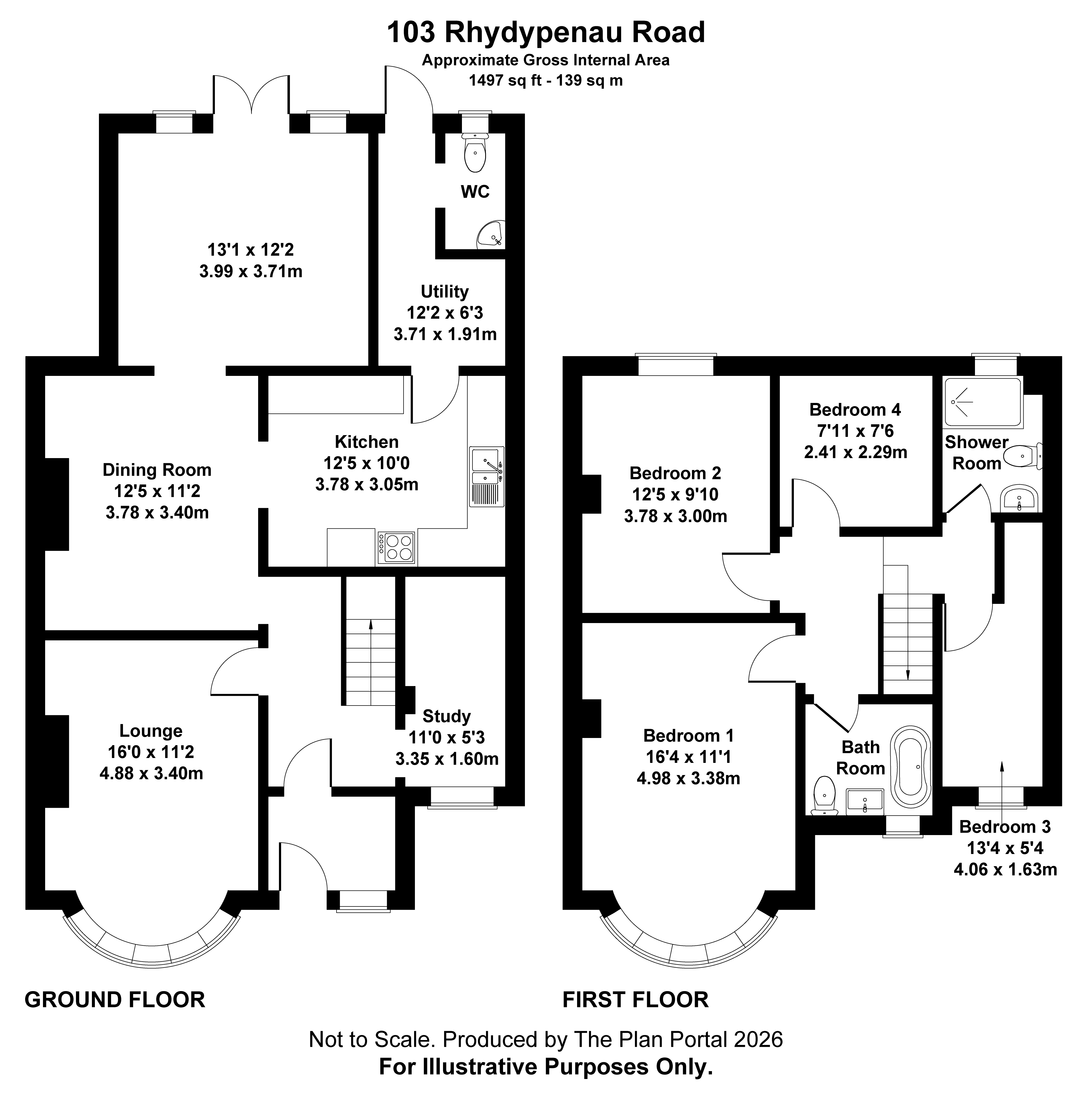 Lounge 16 into bay x 112 Five part curved bay with UPVC double glazed windows with bespoke shutters, radiator, timber fire surround with a grate and black slate hearth, laminate flooring, picture rail.
