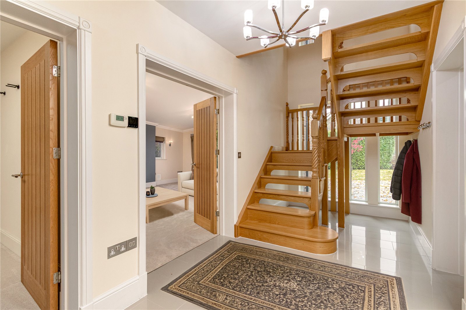 Reception Hall 16'9" (5.11m) x 12'0" (3.66m) Approached by a wide oak panelled door with sealed double glazed insert to upper part, matching side panels, leading onto a welcoming central hallway with galleried landings, oak staircase with newel post and carved rope style spindles, porcelain tiled flooring, under floor heating, panelled radiator.