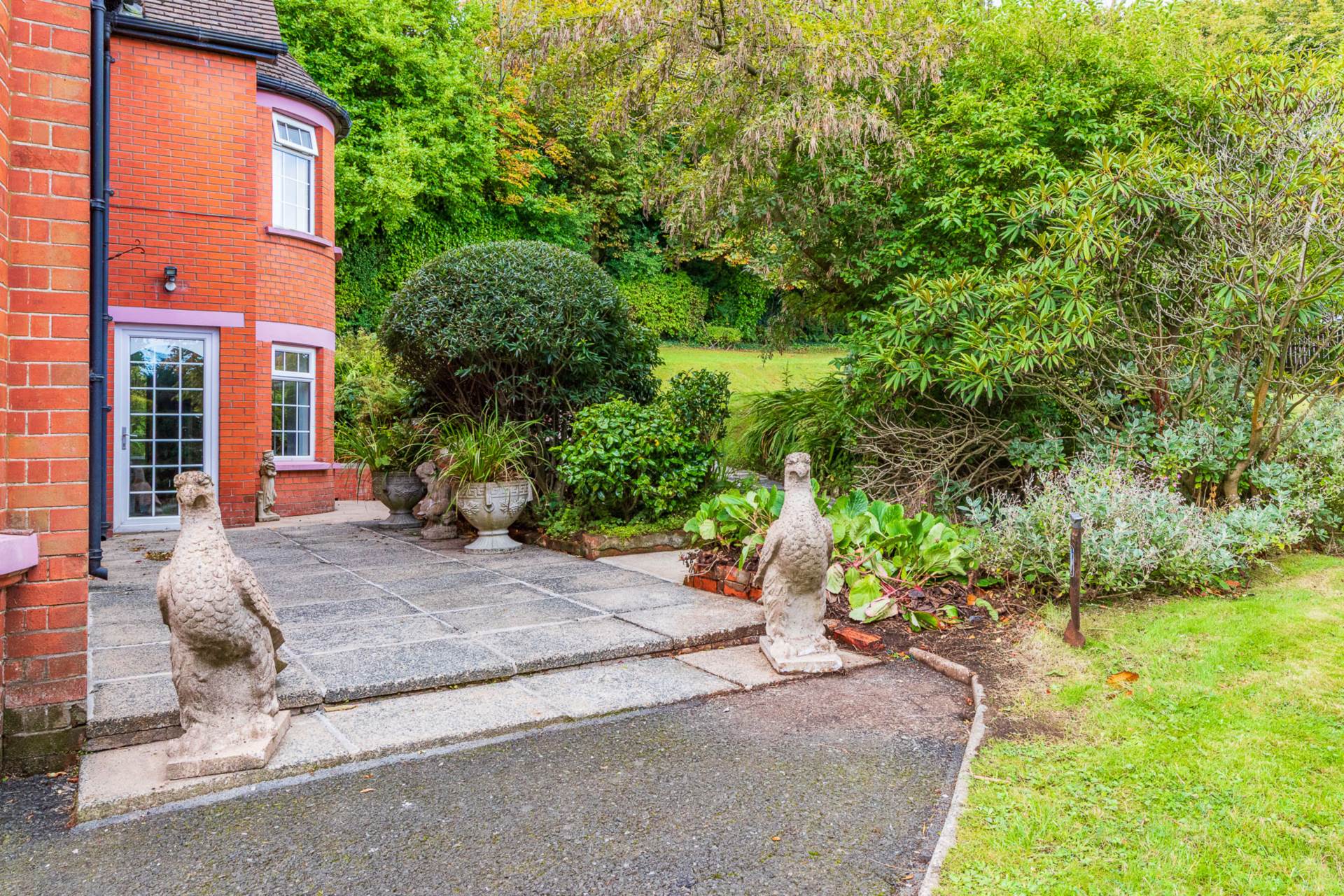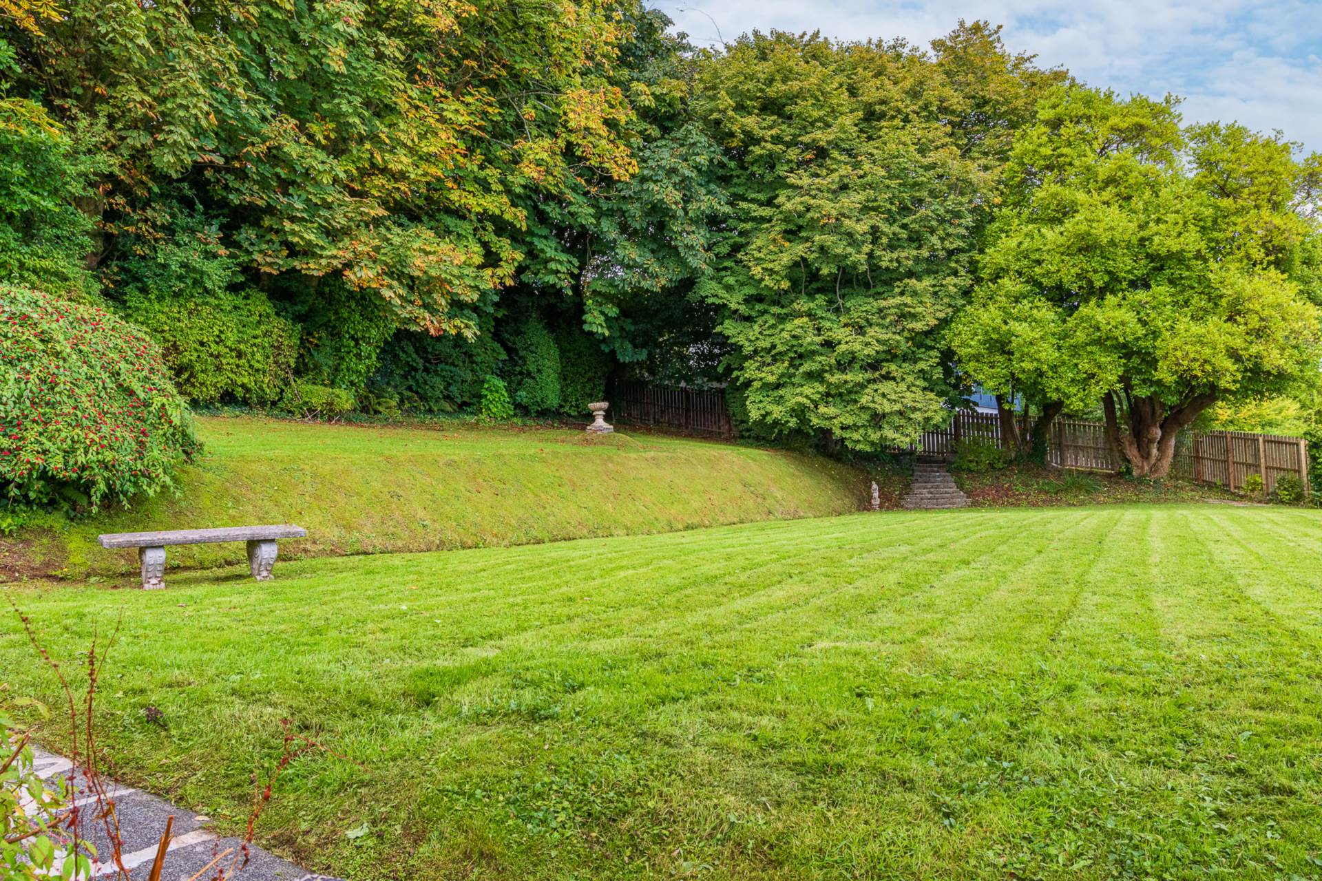 - Delightful mature gardens in lawns with a variety of trees and shrubs including former tennis court