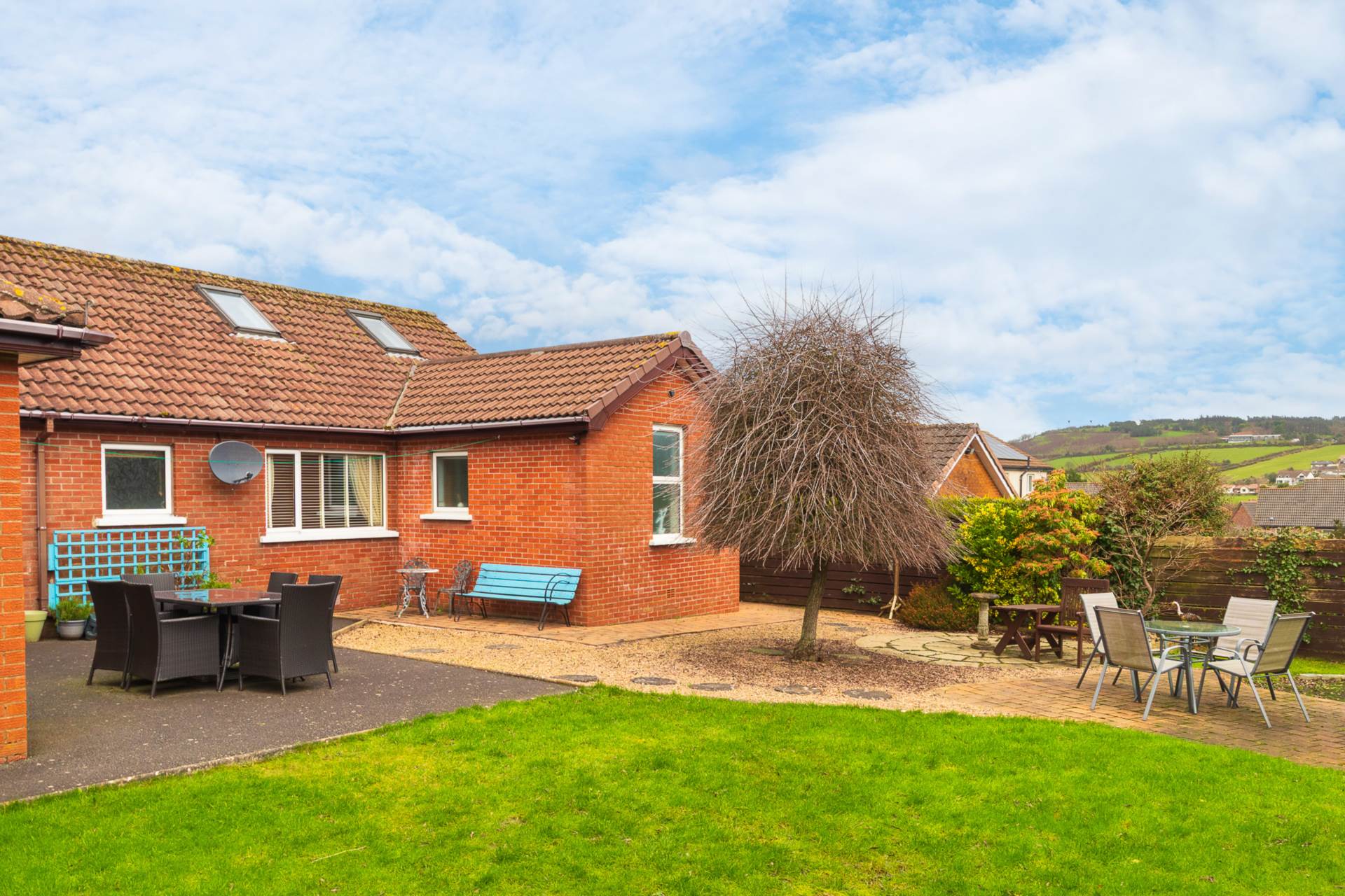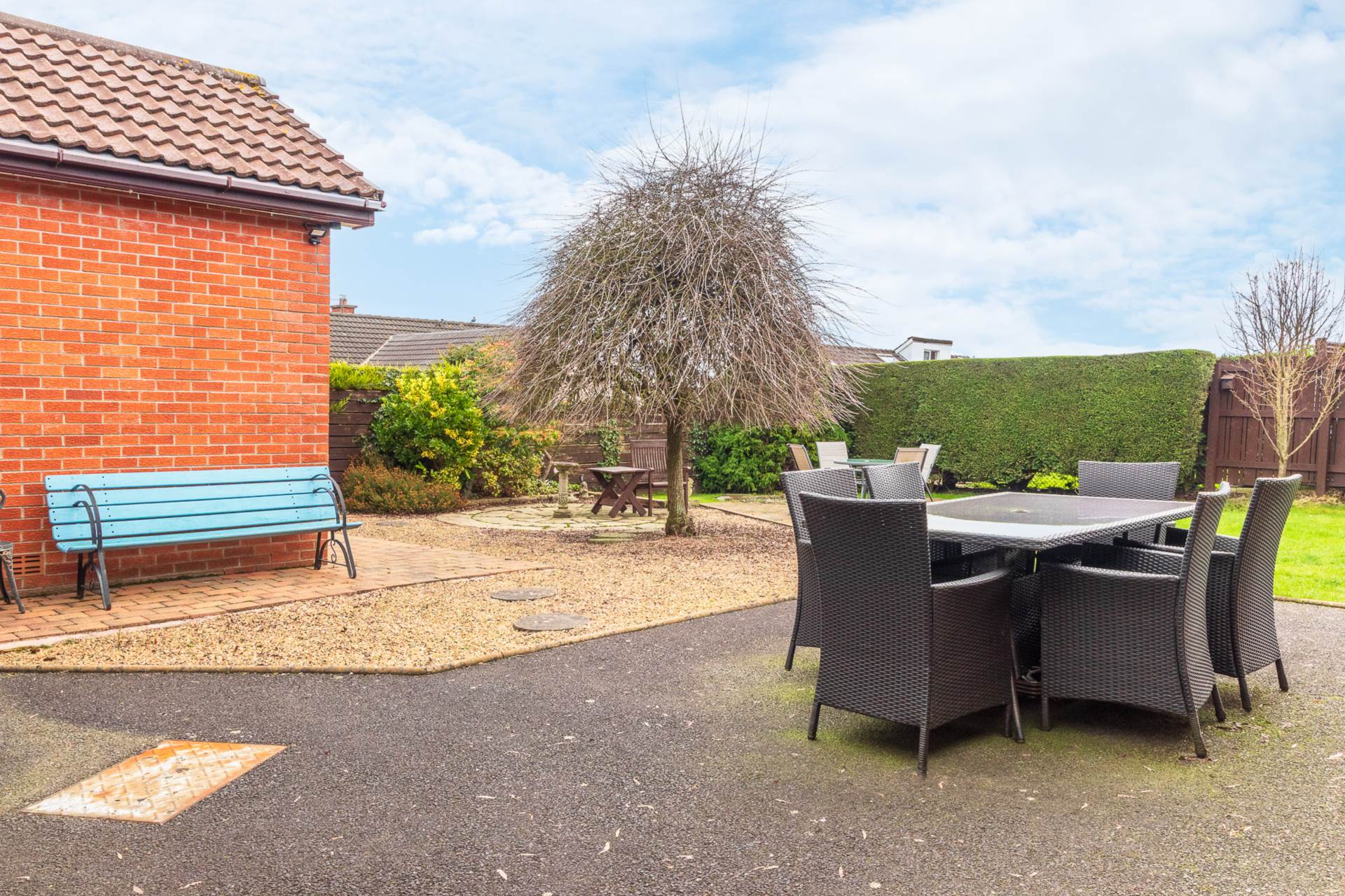 - spacious gardens to front, side and rear in lawns with patio areas and a variety of trees and shrubs