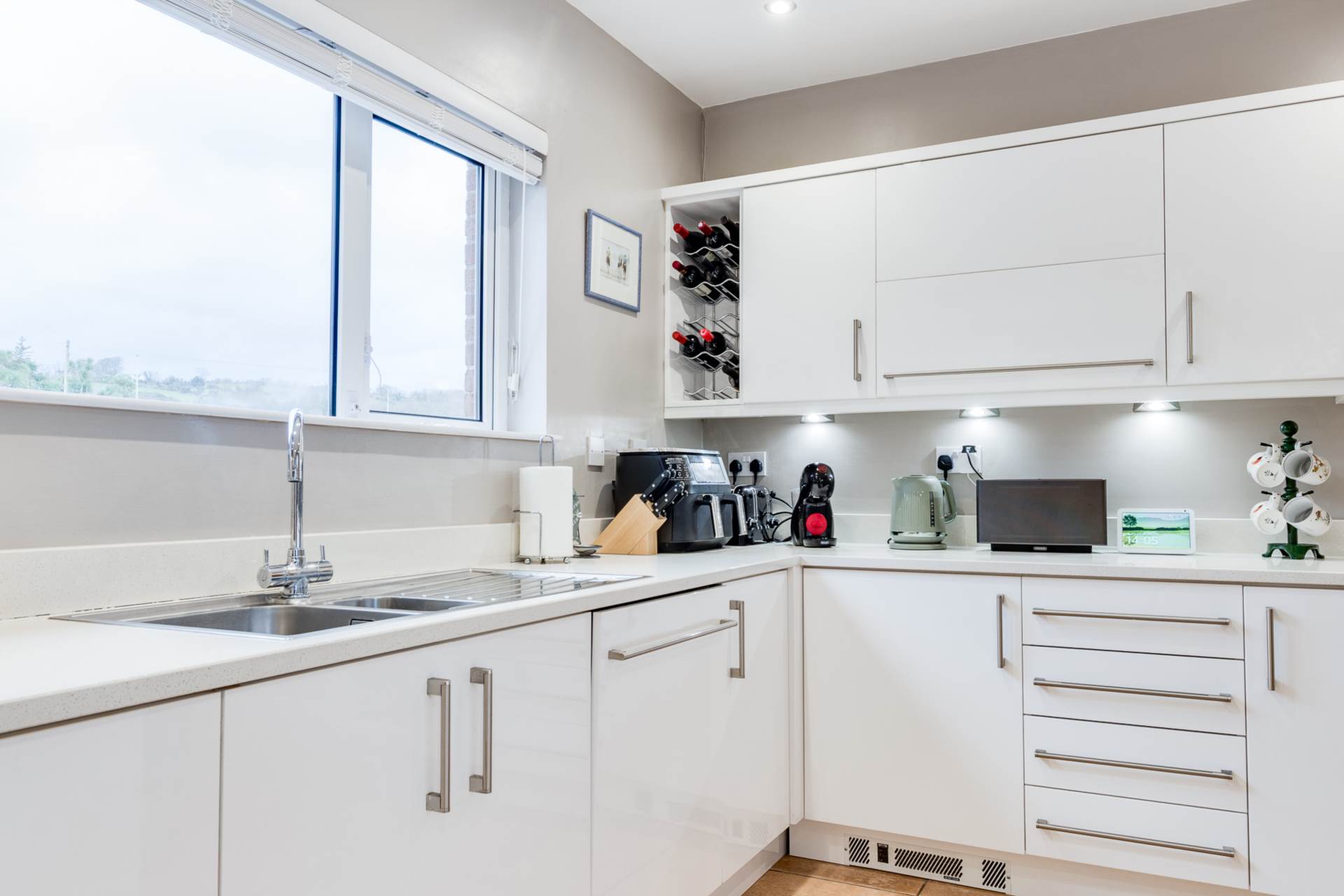 - Well appointed kitchen with excellent range of high and low-level units in a gloss finish