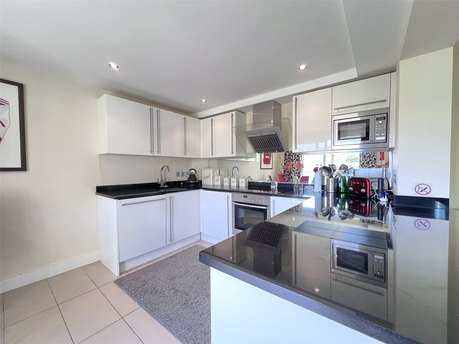 Ideally situated just moments from the marina and harbour, the property is accessed via a well-maintained communal entrance, with both stairs and a lift to upper floors. Inside, the apartment is bright and spacious, designed with a contemporary layout and sleek, neutral finishes, including elegant tiled flooring throughout.