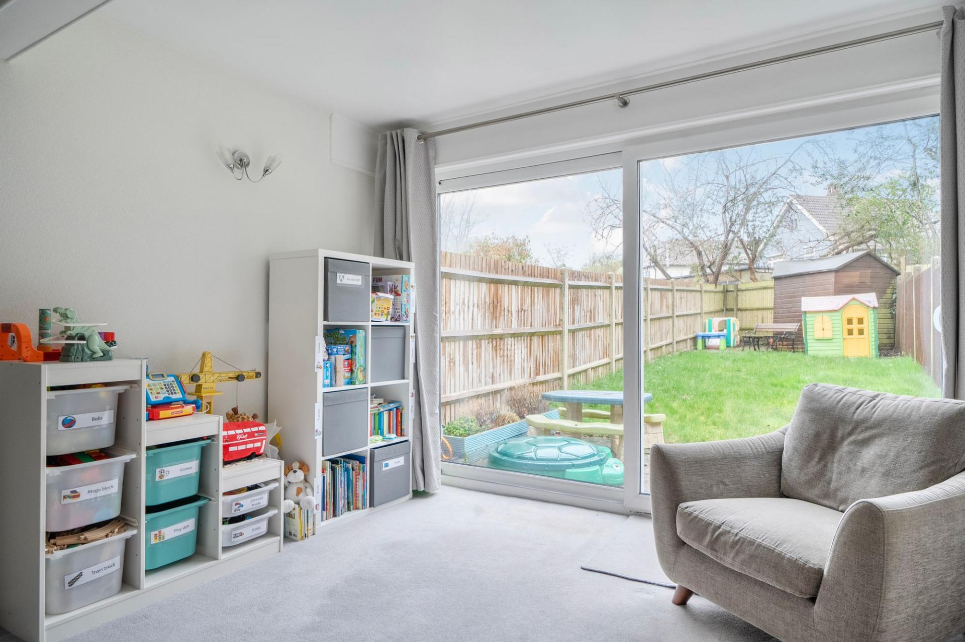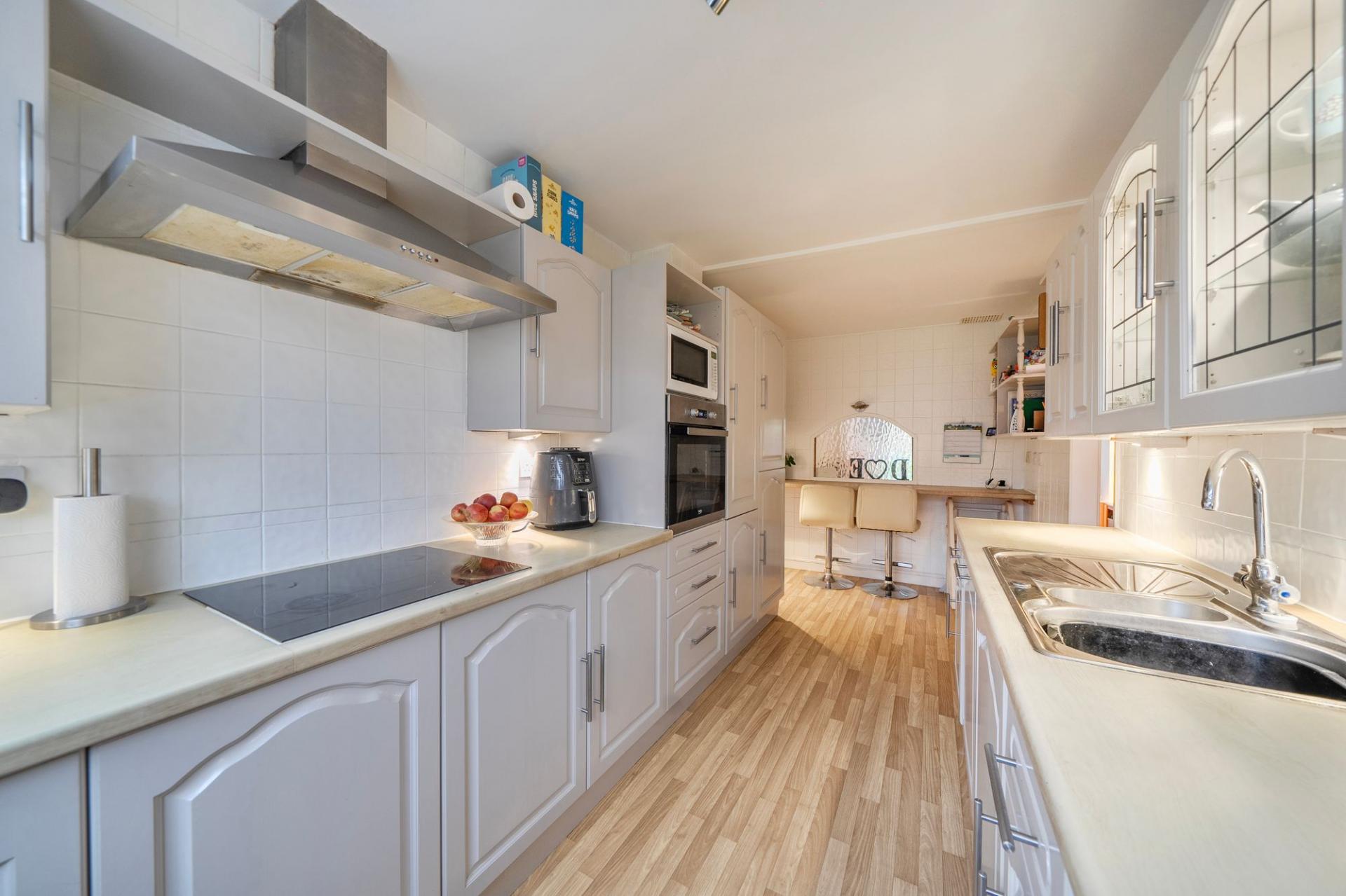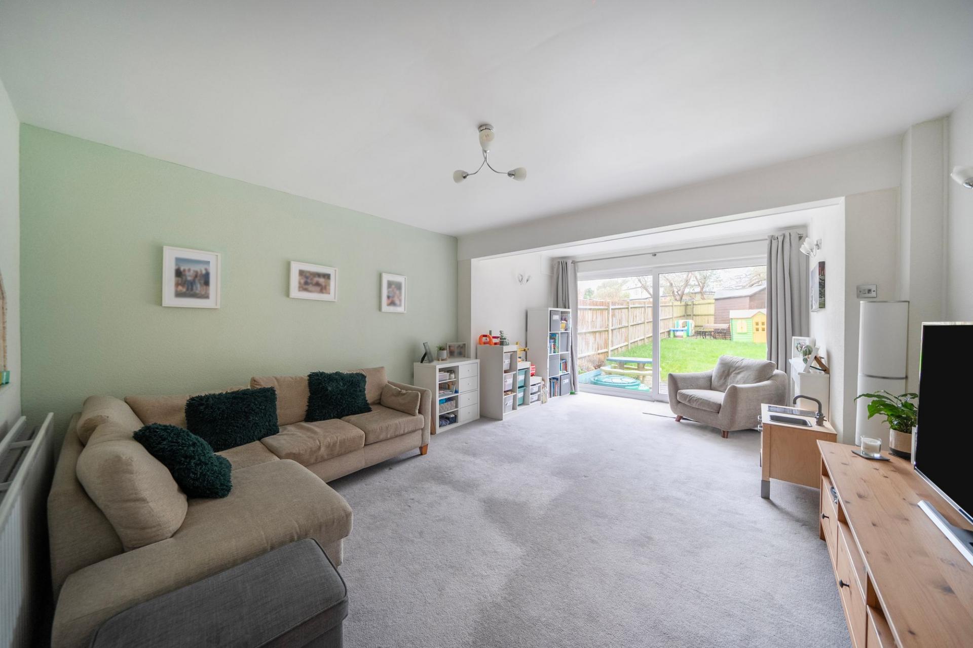 The front aspect kitchen is thoughtfully designed, offering ample storage and a stylish breakfast bar that invites casual mornings or relaxed evening chats. Move through to the rear aspect reception room, where the lounge and dining areas flow seamlessly together, creating an inviting space for entertaining or unwinding in comfort. Patio doors draw your eye towards the garden beyond, adding a sense of openness and connection to the outdoors.