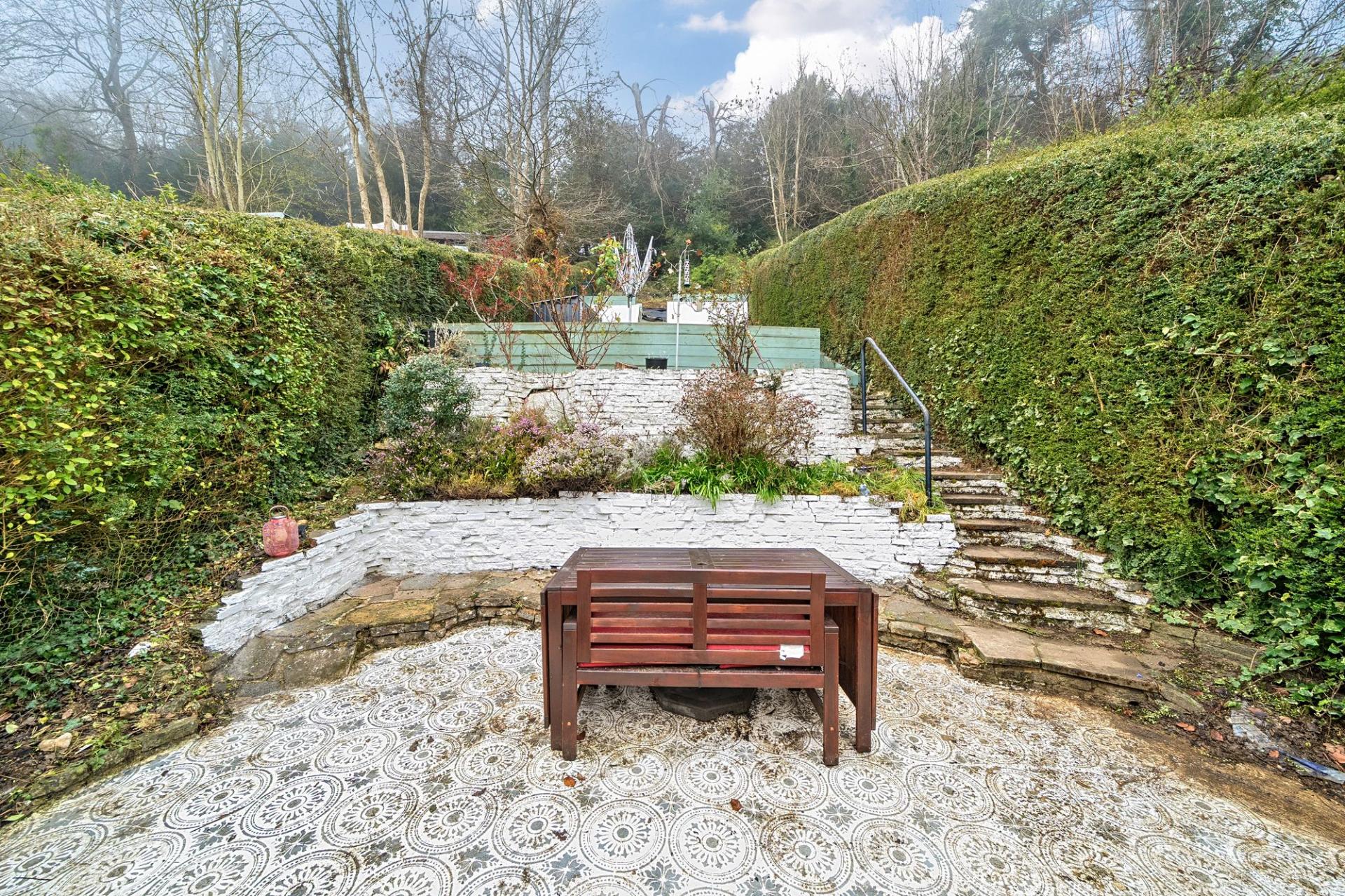 - Substantial rear garden rising to two distinct tiers which offer a patio ideal for entertaining and a level lawn