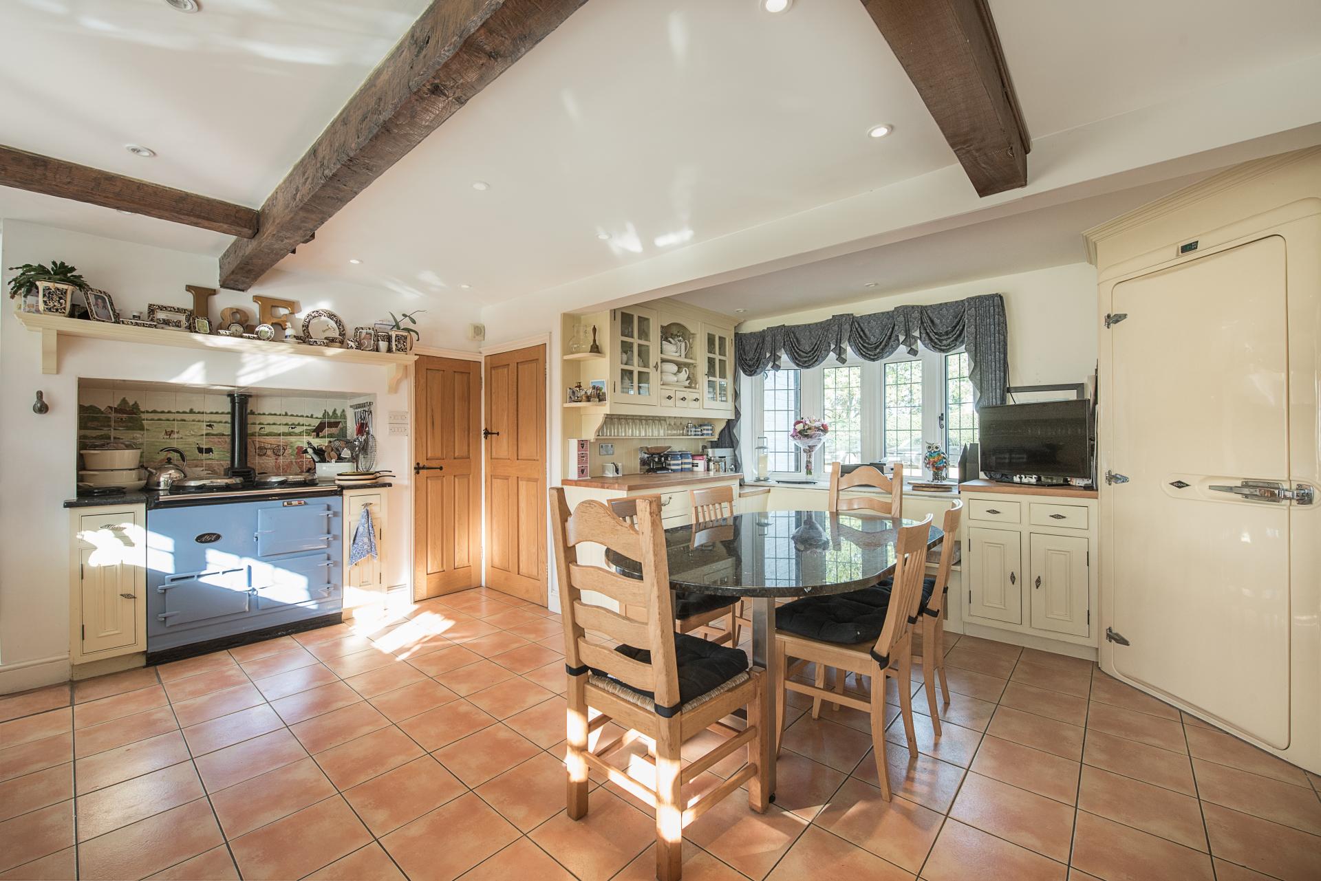 The accomodation is spread over three levels. On the ground floor there is a dual aspect kitchen/breakfast room with a walk in fridge, Aga and companion unit and bespoke fitted cabinets under granite worktops. This complements the beautiful 20' dining room, with bay window and adjacent conservatory. The drawing room is triple aspect and has beams, an inset wood burning fire and wooden flooring. On the first floor, the large Master suite has a large ensuite bathroom and beautiful views over the expansive gardens. There are three further bedrooms, and a family bathroom on this floor, and a further two bedrooms on the third floor, with an adjoining sitting room.