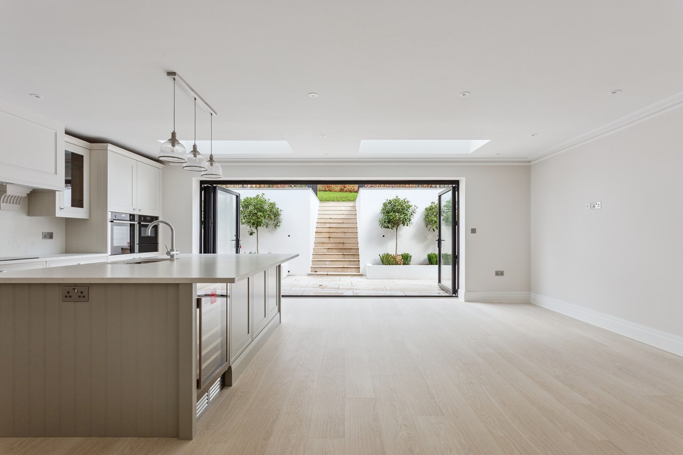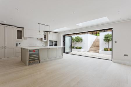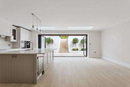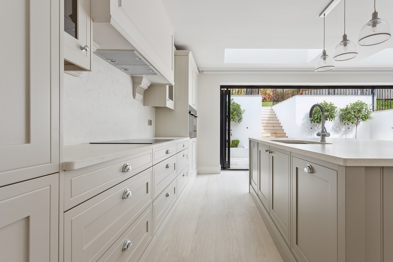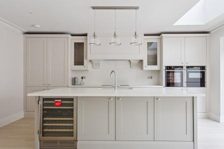 - Bespoke kitchen layout, featuring a breakfast bar and wrap-around worktop with shaker units