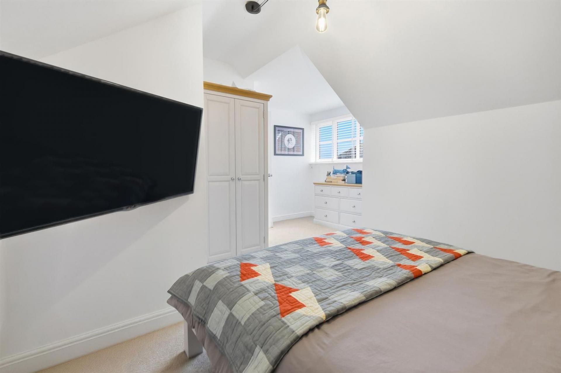 Upstairs, the first floor offers three well-proportioned bedrooms, including a luxurious principal suite with dressing area and en-suite shower room. The remaining bedrooms are served by a sleek family bathroom. The second floor adds a further double bedroom with its own bathroom – ideal for guests, teenagers, or a home office.