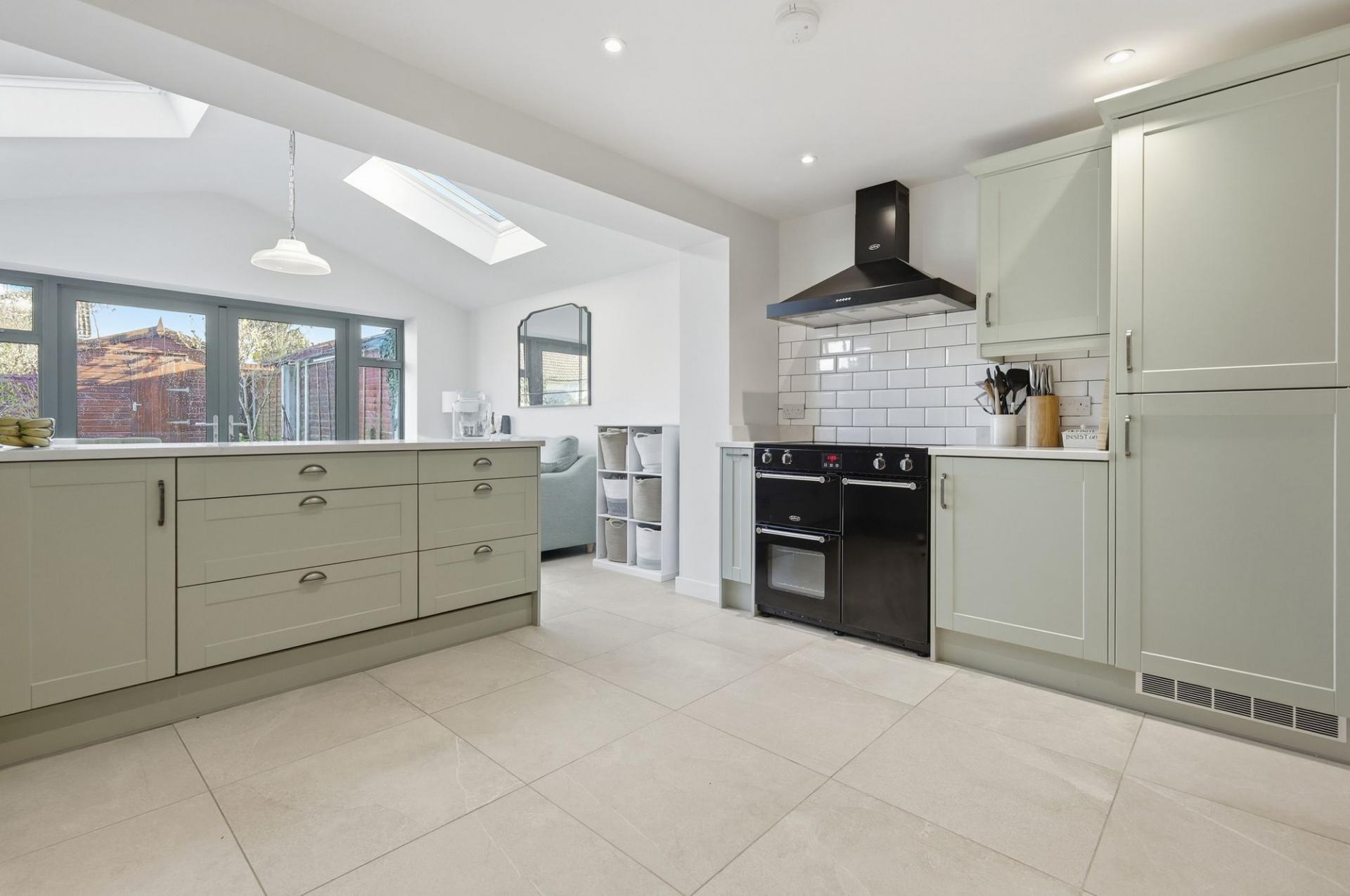 Upon entering, you are welcomed by a bright and spacious entrance hall that sets the tone for the rest of the home. The ground floor features a beautifully appointed living room, offering an ideal space to relax, complete with ample natural light. To the rear, the contemporary kitchen and adjoining dining area create a wonderful open-plan feel, perfectly suited to everyday living and entertaining. French doors open directly onto the impressive rear garden, extending the living space outdoors and offering a seamless connection with the surrounding greenery.