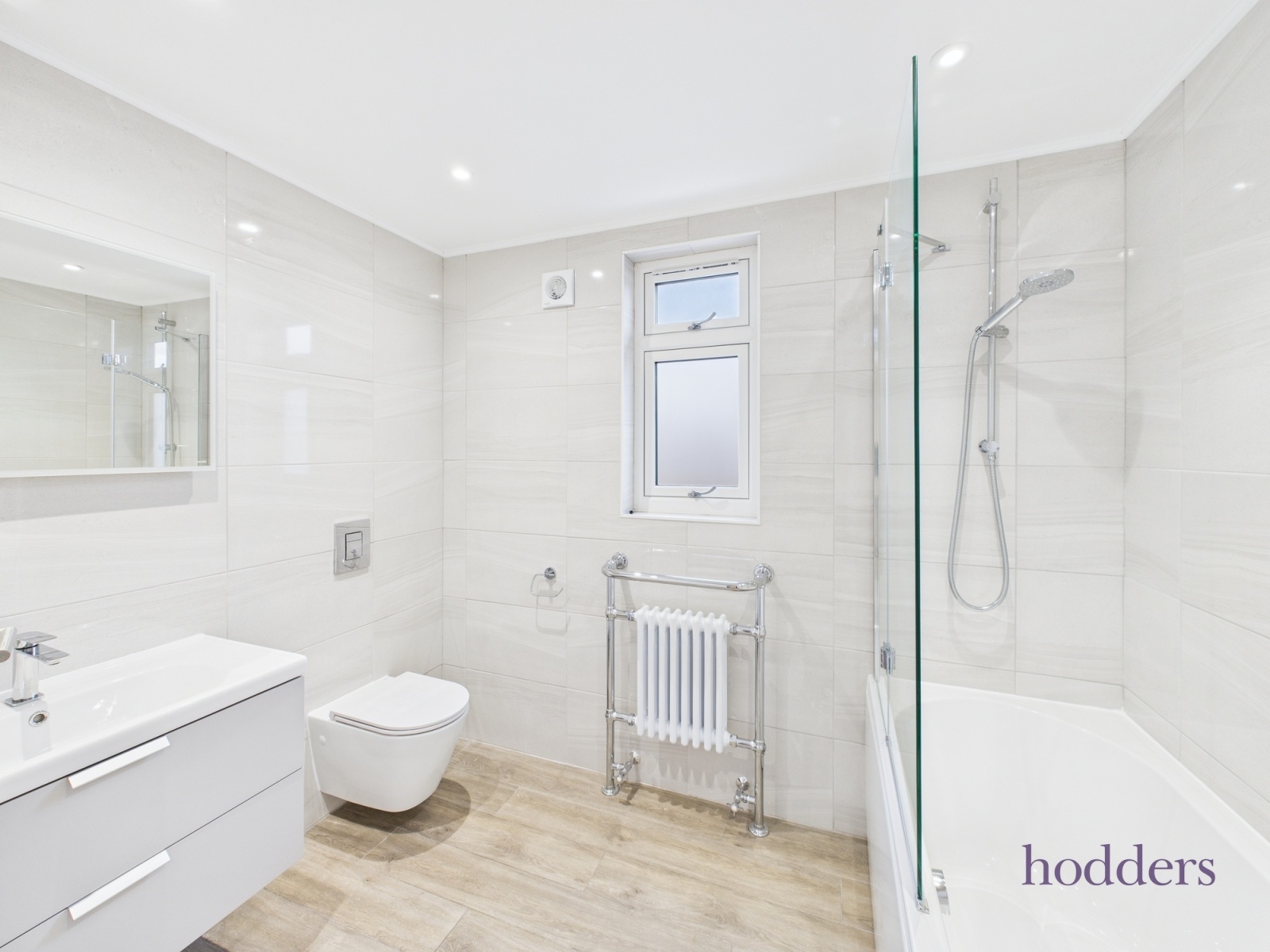 Nestled on one of Chertsey South's most sought-after roads, this impressive residence offers flexible and beautifully appointed accommodation arranged over two floors, finished to the highest standard throughout.Upon entering, you are welcomed by a spacious and inviting hallway leading to two superb double bedrooms on the ground floor, alongside an elegant family bathroom. The heart of the home is the contemporary open-plan kitchen, complete with integrated appliances, an American-style fridge freezer with plumbed water supply, and a striking central island. The adjoining dining and living area provides an ideal space for family life and entertaining alike, with bi-fold doors opening directly onto the landscaped rear garden. A separate utility room and convenient WC complete the ground floor, which benefits from underfloor heating throughout.Upstairs, the first floor features two generous double bedrooms, each with its own en-suite bathroom. The principal bedroom enjoys a Juliet balcony, a luxurious walk-in wardrobe, and a stylish en-suite shower room. The second bedroom also includes a walk-in wardrobe and a beautifully appointed en-suite featuring a freestanding bath.Every detail of this home has been carefully designed and crafted to create a refined, contemporary living environment of exceptional quality.To fully appreciate all that this outstanding property has to offer, please contact Hodders today to arrange your viewing and avoid disappointment.