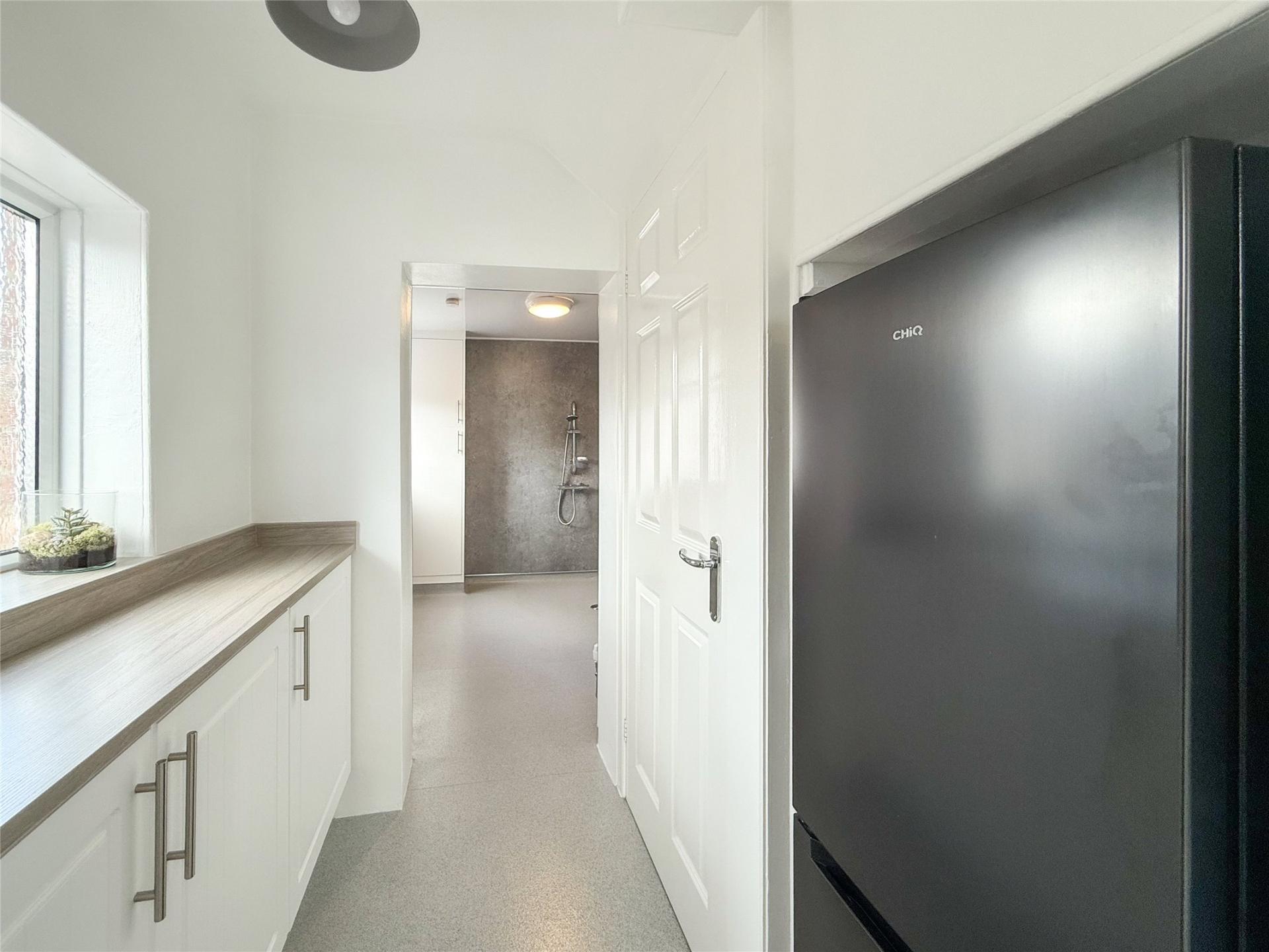 To the rear, the heart of the home is revealed a stunning open-plan kitchen, dining, and family/sun room. The kitchen is fitted with an attractive range of cabinetry and includes provision for a range-style oven, offering both practicality and timeless style. The adjoining dining area, complete with patio doors opening to the rear garden, flows effortlessly into the family/sun room a relaxed and sociable space perfect for everyday living. A separate utility room and a stylish downstairs wet-room style shower room complete the well-designed ground floor accommodation.