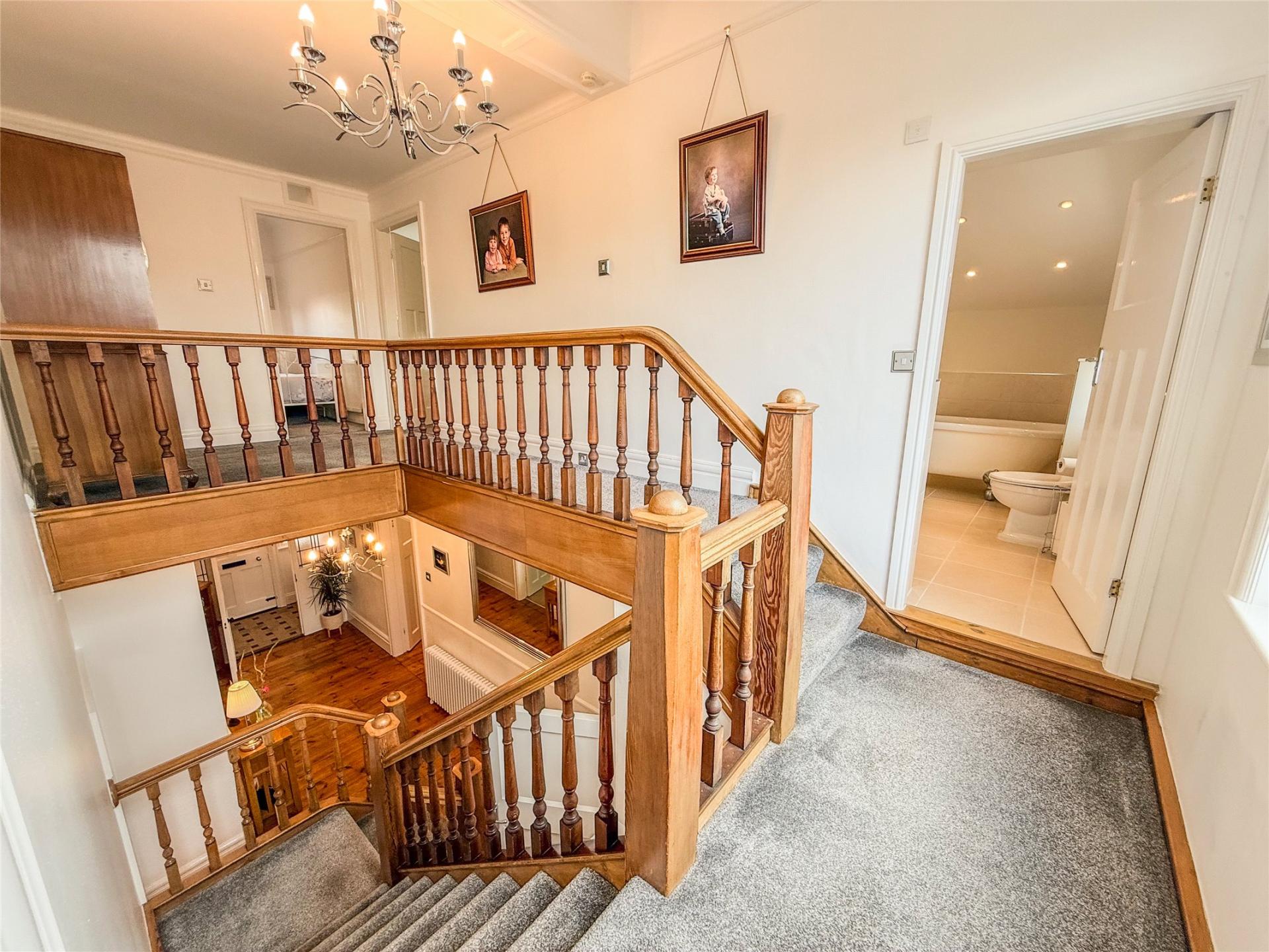 From the moment you arrive, the home's imposing façade and generous plot make an instant impression. A welcoming entrance lobby sets the tone, with its beautiful part-leaded and stained glass door framed by matching decorative side panels a striking nod to the home's heritage. This opens into a grand and impressive hallway, exuding a warm and refined ambience.