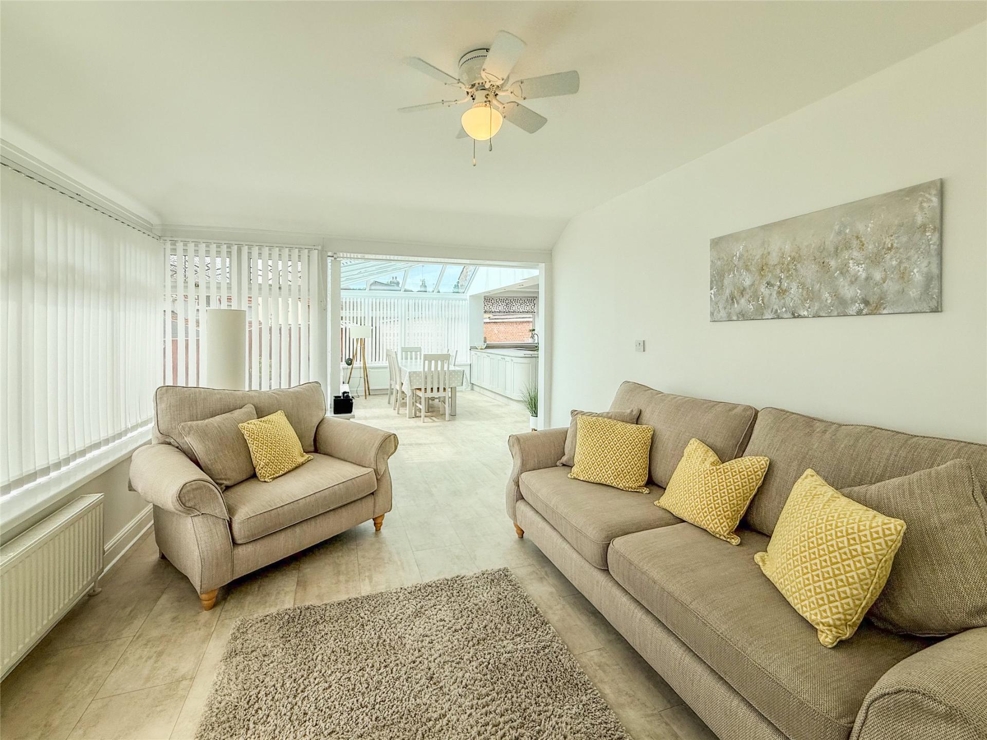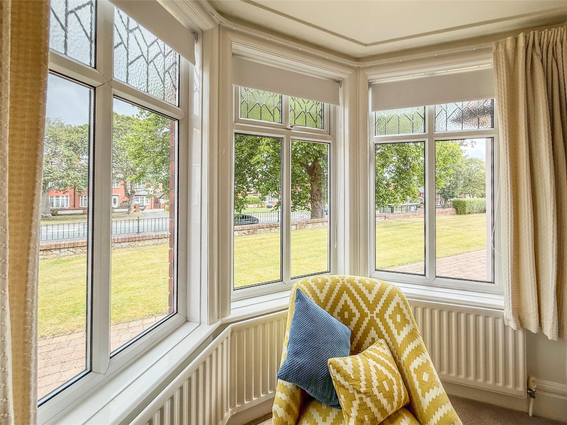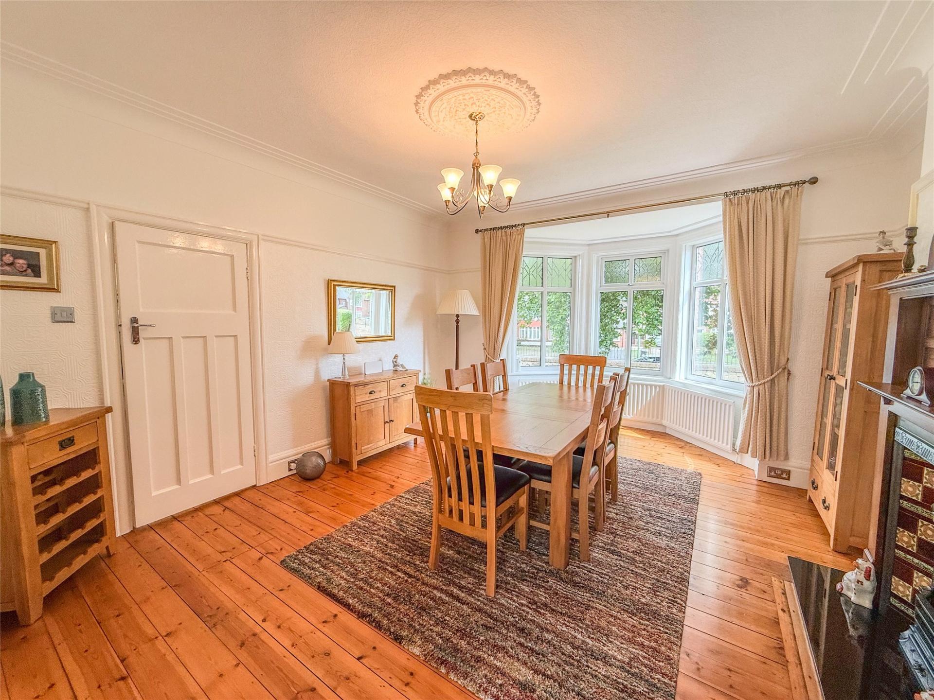 The formal lounge, positioned to the front of the property, with a delightful bay window. Elegant coving, a central ceiling rose, and a statement fireplace set into the chimney breast create a perfect balance of comfort and style.
