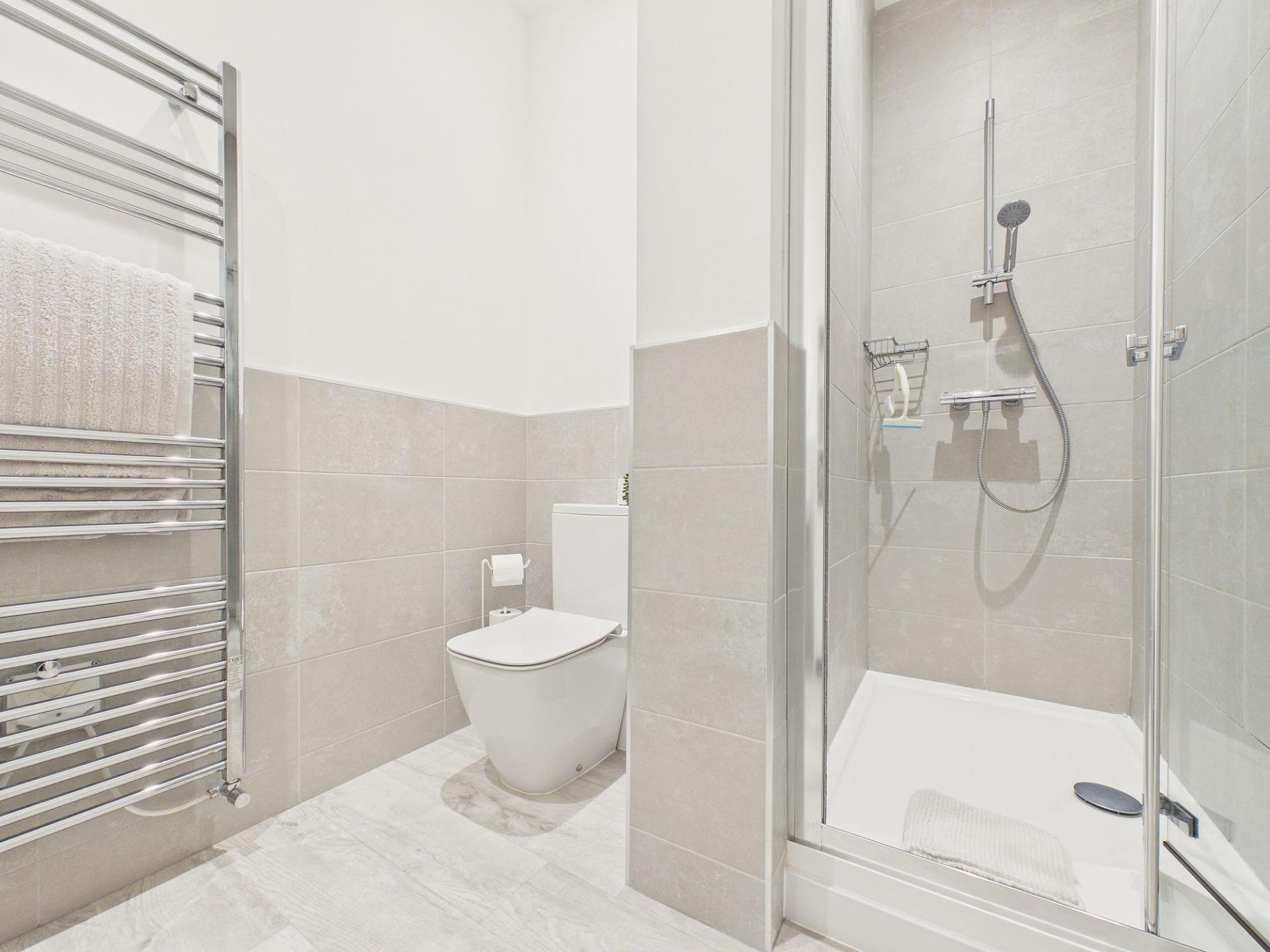 There are two well-proportioned double bedrooms, both superbly presented. The principal bedroom is particularly impressive, boasting a sleek, modern en suite shower room. The second bedroom features fitted wardrobes and is ideal for children, guests, a home office or as additional living space. A stylish family bathroom completes this beautifully presented home.