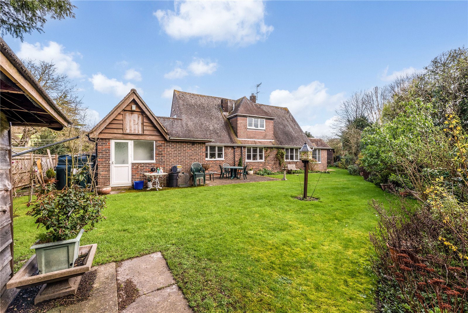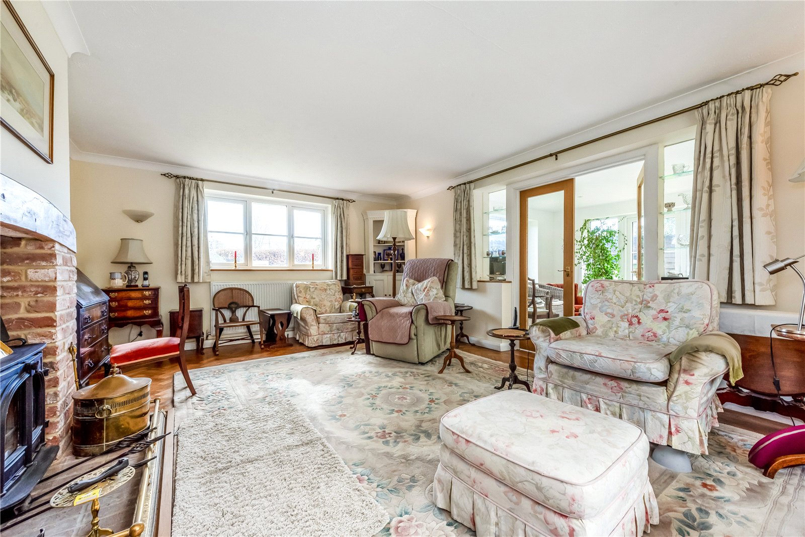 On the ground floor are three reception rooms: a stylish sitting room with a feature wood-burning stove and attractive herringbone flooring, a recently built tri-aspect day room with double doors opening onto the garden, and a dining room that could be reconfigured as a fourth bedroom. From the spacious hallway there is a large kitchen/breakfast room, with a utility/boot room beyond (doors to both the front and rear gardens), together with a cloakroom/shower room. In recent years, the former garage has been converted to create a bedroom, also served by the ground-floor shower room. Upstairs, a wide landing leads to two well-sized bedrooms with fabulous downland views, and a family bathroom. Useful eaves storage runs the length of the first floor.