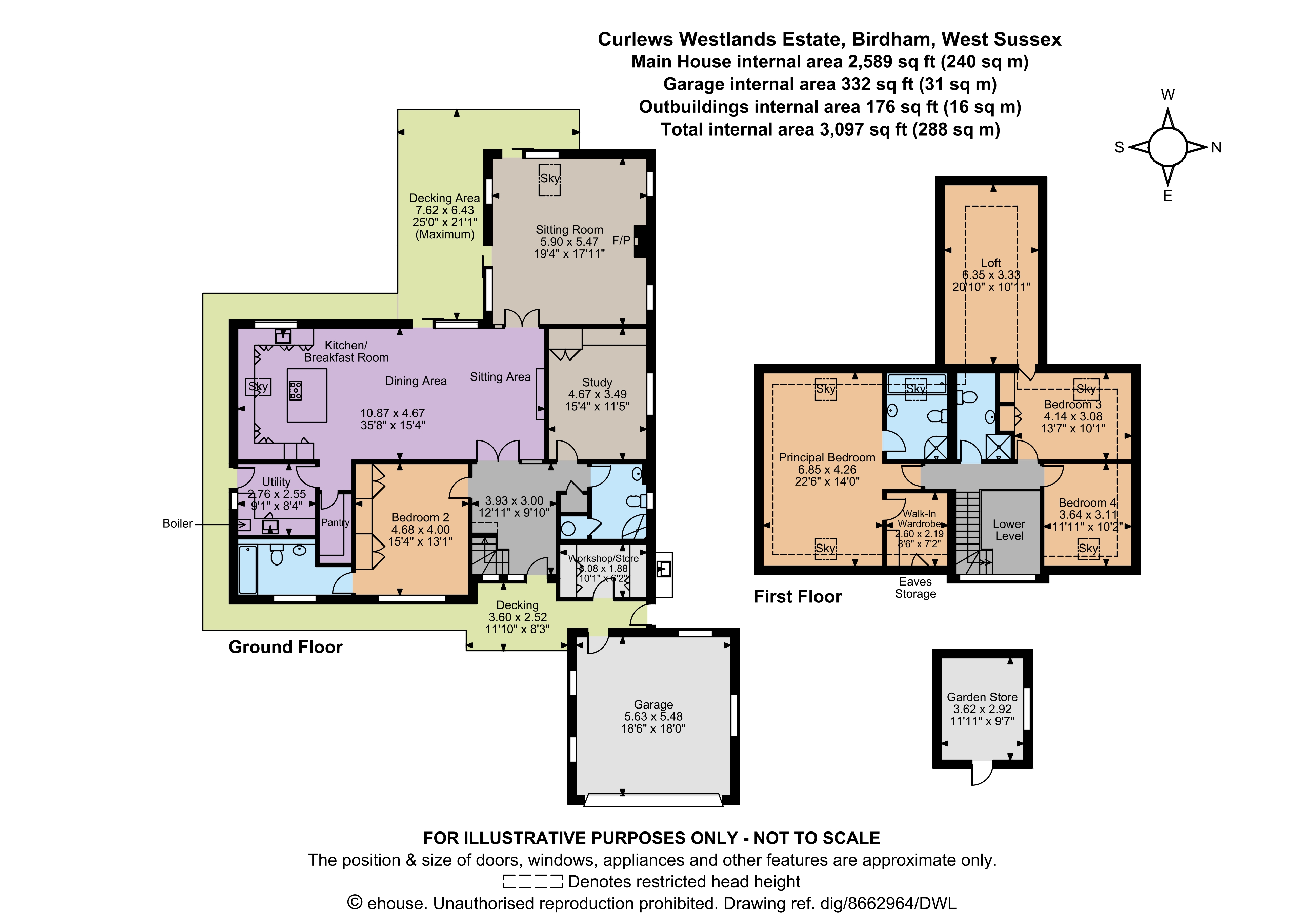 The Westlands Estate is a private development on the shores of Chichester Harbour, just inland from the coast and within a protected Area of Outstanding Natural Beauty. It is ideal for sailing enthusiasts, with moorings and the provision for boats to be launched from the Westlands slipway, a stone's throw from the property. Moorings are also available nearby in Chichester Marina and Birdham Pool. The Harbour Conservancy provide a secure store cabin for engines and equipment together with chained boat storage outside at Westlands. There is immediate access onto the harbour path which encircles the harbour and onwards east and west providing a wonderful location for keen walkers. The village of Birdham has a variety of day-to-day amenities, including a village church, primary school, an excellent village store and traditional cricket green. The Cathedral City of Chichester o?ers a range of shops, bars and restaurants as well as the renowned Festival Theatre and Pallant House Gallery.