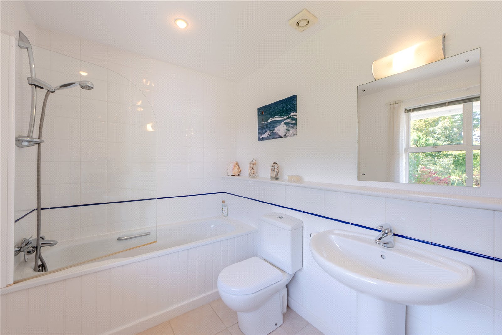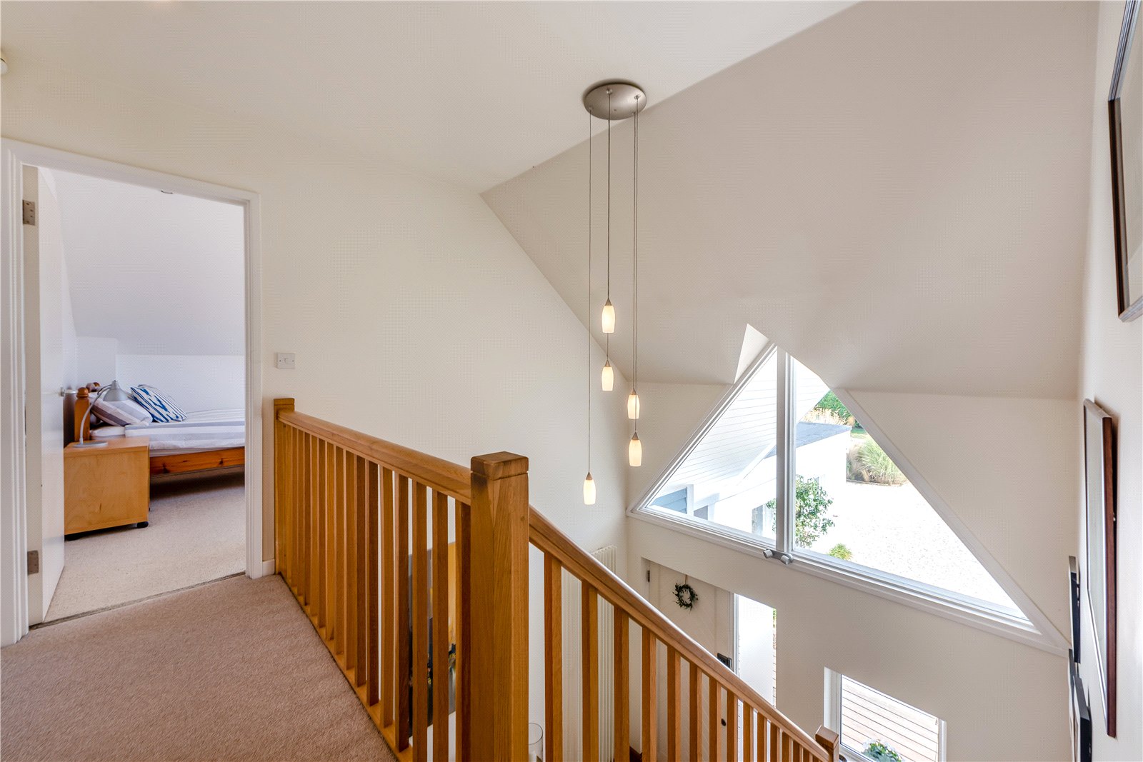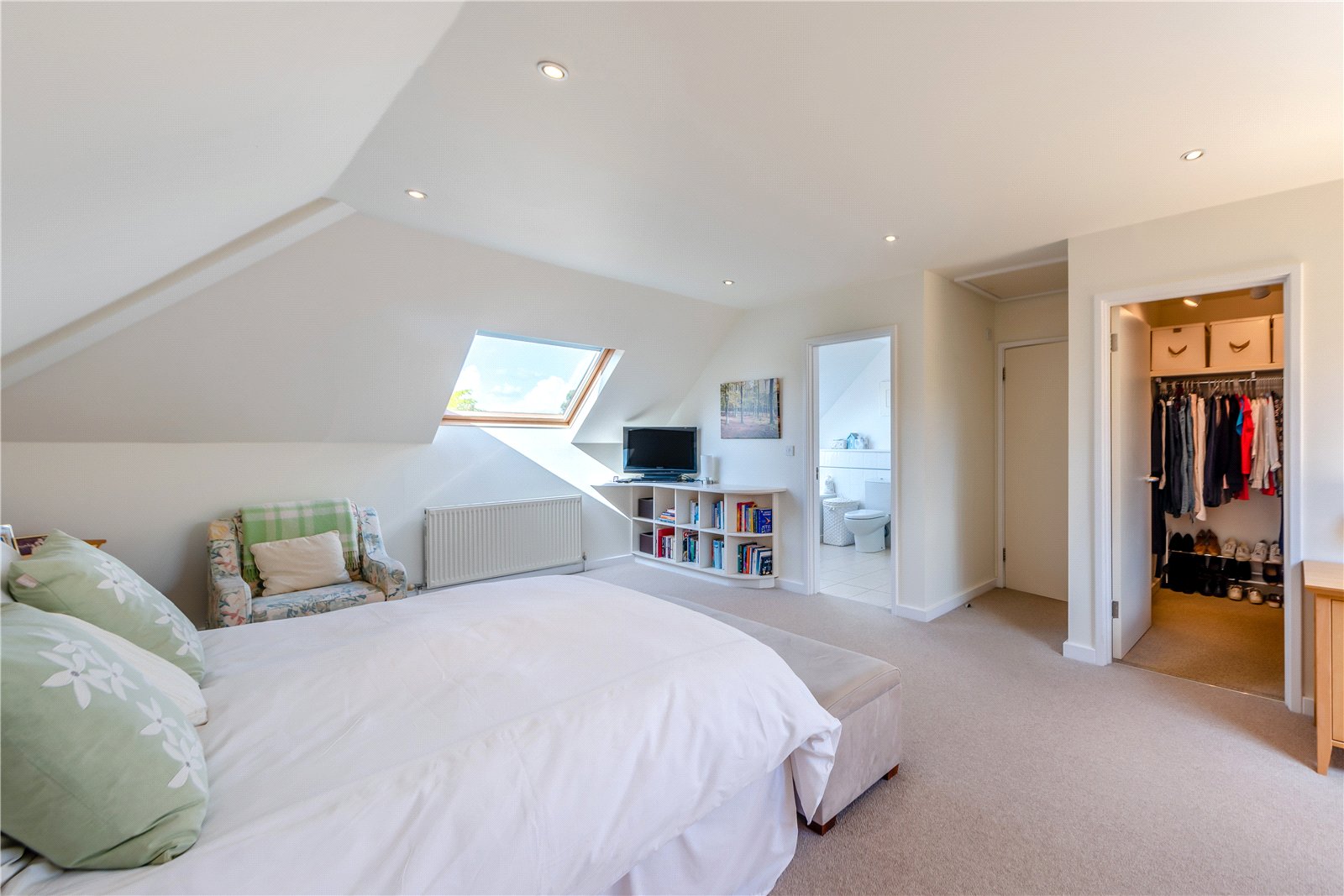 The galleried first floor landing gives access to the property's three remaining part-vaulted bedrooms and a family shower room. Velux glazing provides plenty of natural light upstairs. The prinicpal bedroom has a walk-in wardrobe with eaves storage and an en suite bathroom with bath and separate shower. One of the remaining bedrooms at the rear has a door to a vaulted loft, suitable for numerous uses.