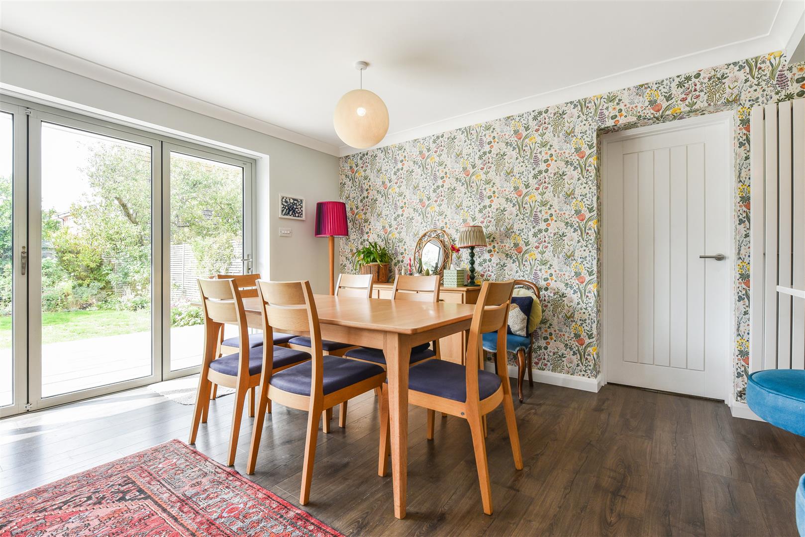 Open-plan Kitchen/Dining/Family Room: Bi-fold doors into rear garden, inset Wood burner, Breakfast bar, integrated fridge/freezer, 7-ring Range cooker, integrated dishwasher, inset double stainless steel sink. Large pantry/understairs cupboard.