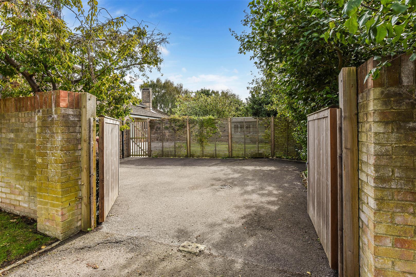 There is a private, gated driveway with parking for multiple cars and rear entrance into the garden.