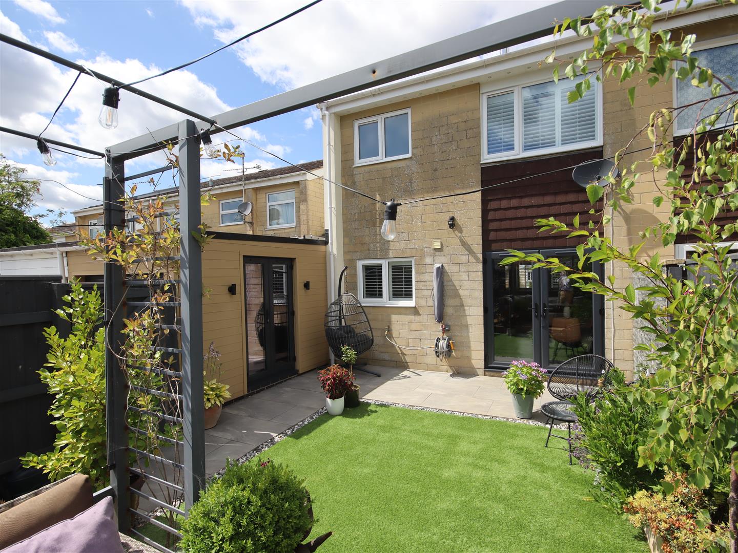 Rear Garden - Delightful enclosed garden with gated side access to driveway. Patio area with artificial lawn beyond with flower and shrub border and path to decked seating area. Outside tap and power points.