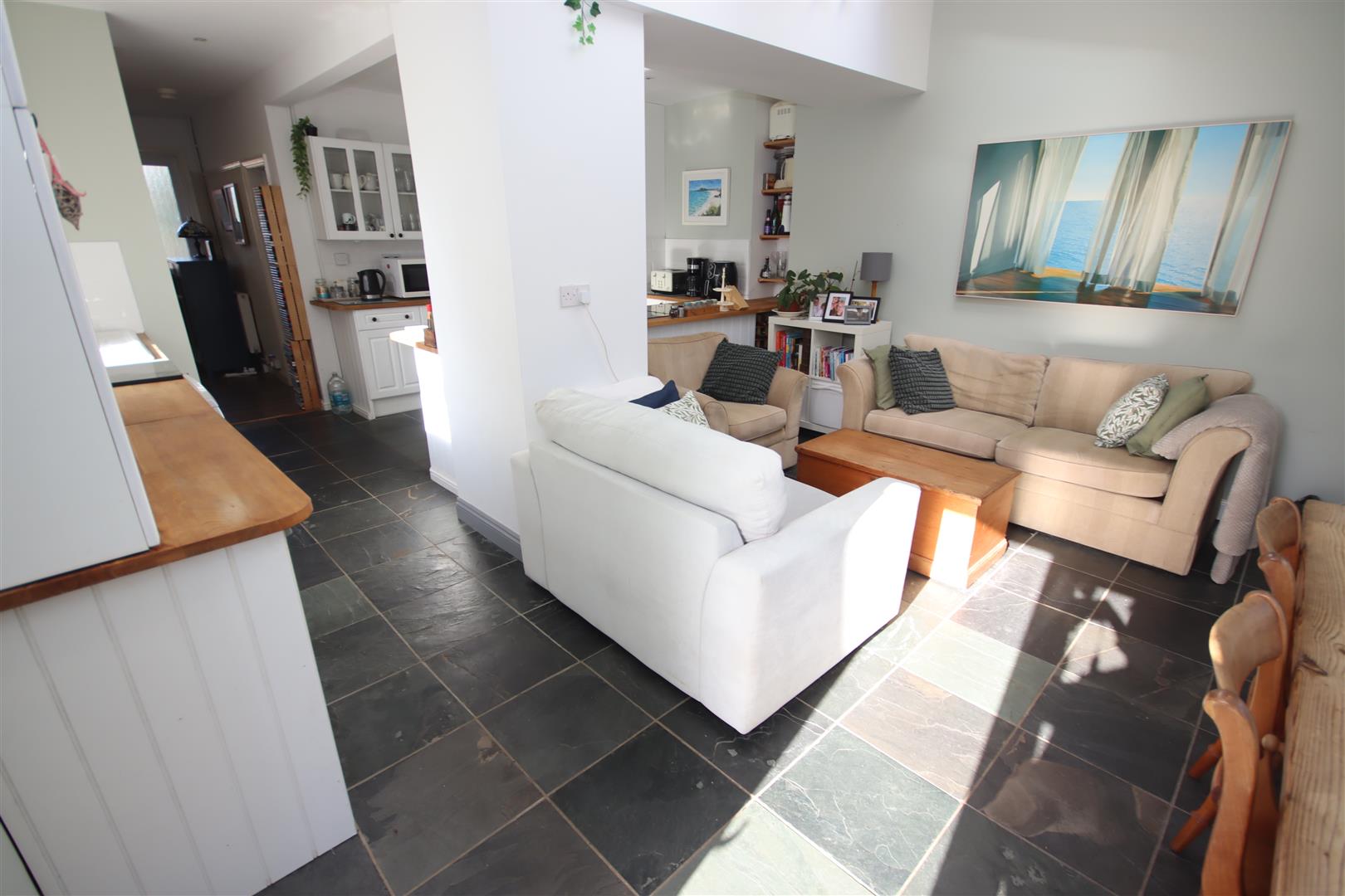 NO ONWARD CHAIN! An extended three bedroom semi detached ideally situated just a short walk from the town centre and mainline station with generous enclosed frontage and large private rear garden with a substantial garden studio. The main feature of the ground floor is the impressive open plan kitchen/dining/family room with sky lights and two sets of French doors creating a wonderful light and airy room, which is then complemented a lovely 'cosy' sitting room with a fireplace housing a wood burning stove. The first floor has two double bedrooms, third single bedroom and a bathroom with overbath shower. To the front is large gravelled area offering ample off road parking with a high fence and double gates offering great privacy and to the side there is an attached workshop/store. The large rear garden also enjoys the same feeling of privacy with numerous trees and mature hedging. It has a patio area with a large expanse of lawn beyond and the large garden studio which offers scope for a variety of uses.