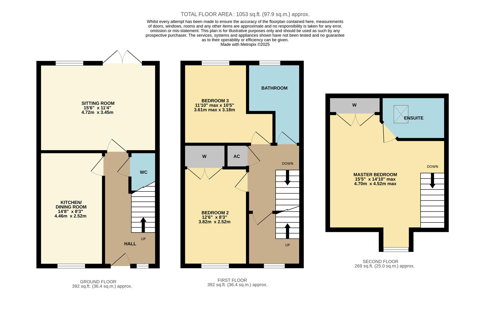 En-Suite Shower Room - Skylight window to rear. Chrome ladder radiator. Fully tiled shower cubicle. Pedestal wash basin with chrome mixer tap. Close coupled WC. Tiling to principal areas. Shaver point. Spotlights. Extractor.