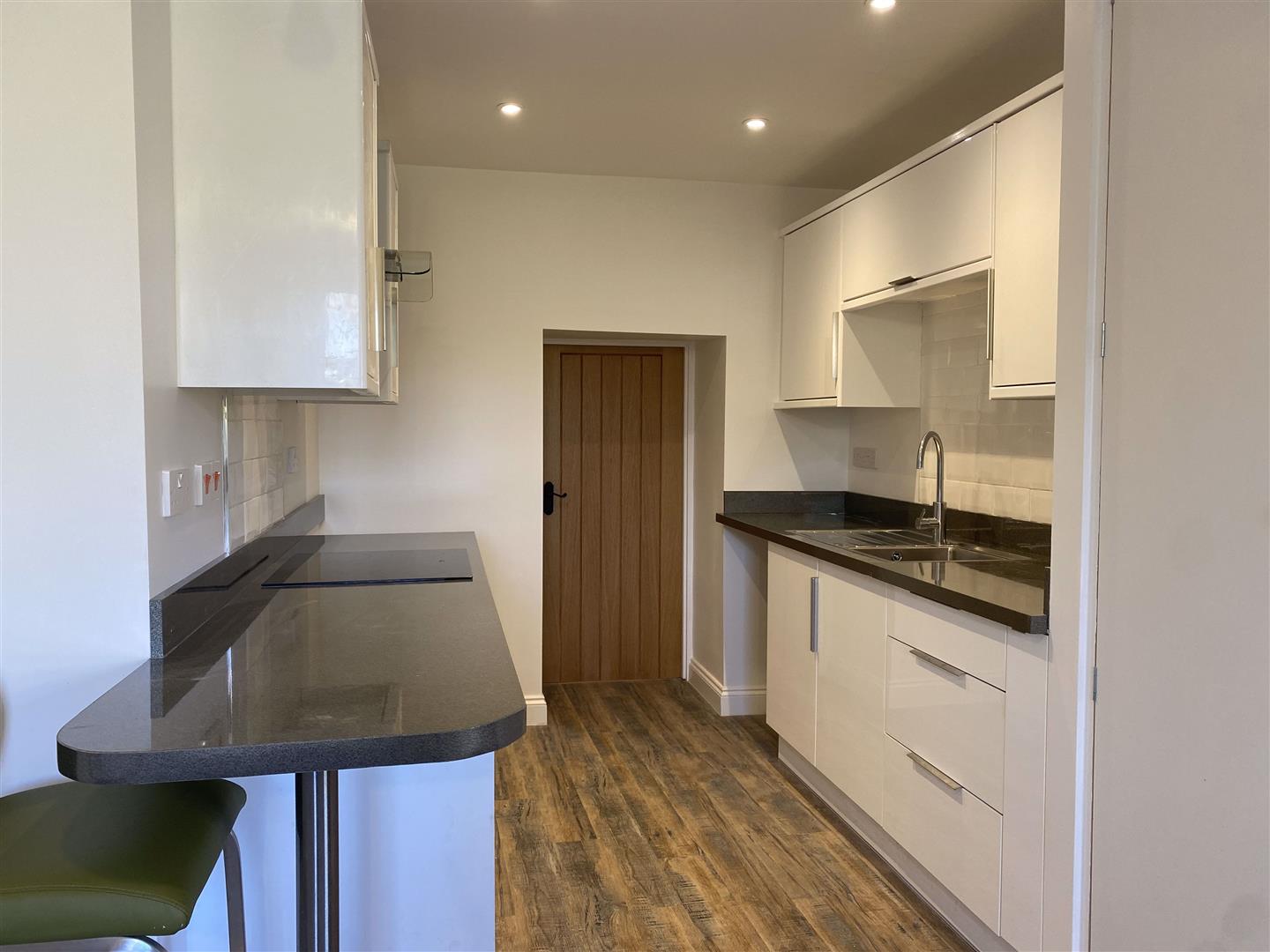 Kitchen - Range of matching wall and base units with worksurface over. Built-in oven and hob with extractor over. Stainless steel sink unit with stainless steel mixer tap. Door to: