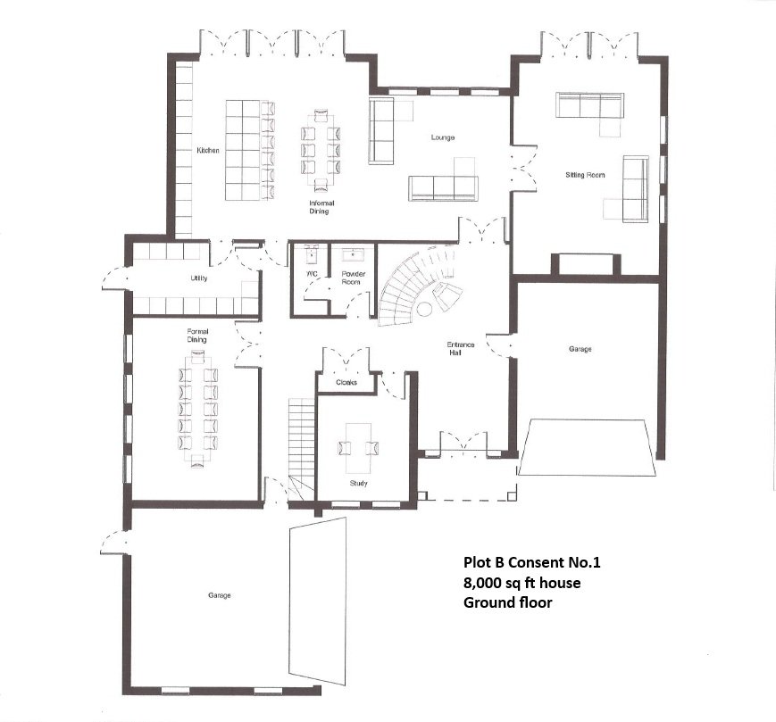 CONSENT NUMBER ONE granted 10.12.24 to build one 6-bedroom 8,000 sq ft detached house with integral garaging. The planning reference number is 24/01815/FULL1 which can be viewed on the Bromley planning portal.