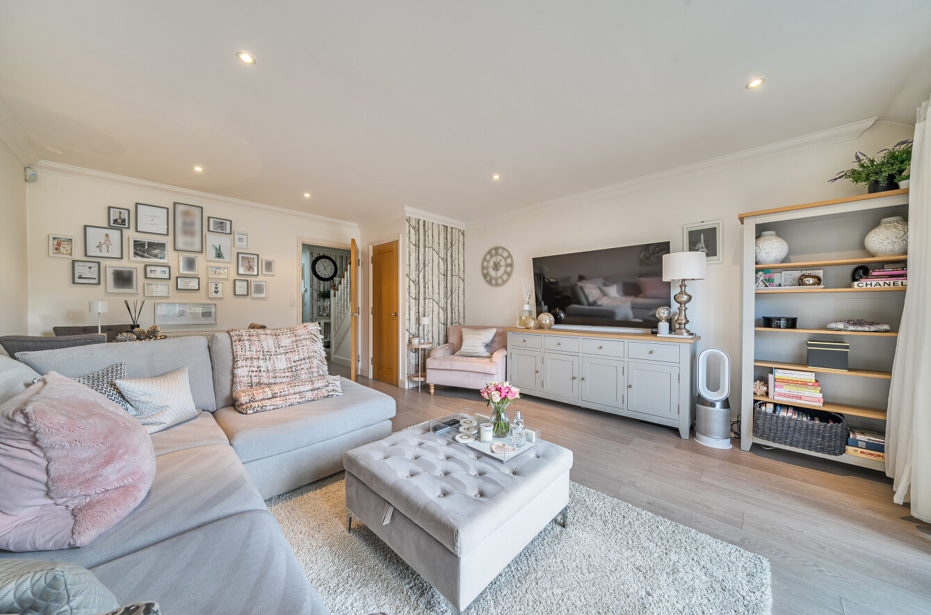 Inside, you will find a calm, neutral interior with engineered wood flooring running through the hall and into the reception room. There is a guest cloakroom and access to the kitchen situated at the front of the house.