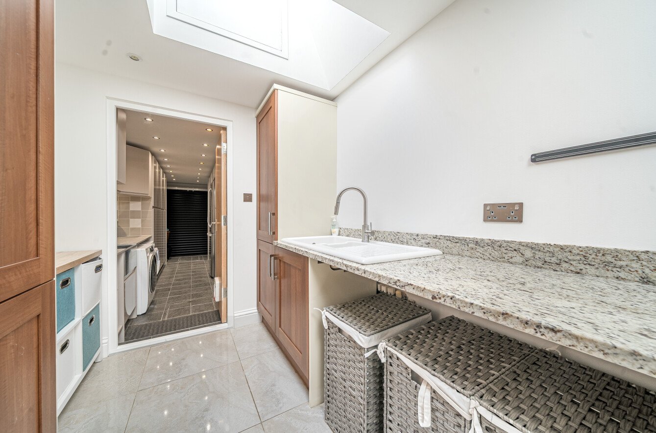 The kitchen offers a range of integrated appliances, ample storage space and a large central island which adds a touch of elegance and functionality to the home, perfect for culinary enthusiasts and entertaining guests. For added convenience, and adjacent to the kitchen, is a spacious fully equipped utility room with ample storage space and plumbing for washing machine tumble dryer and space for additional fridge/freezer.