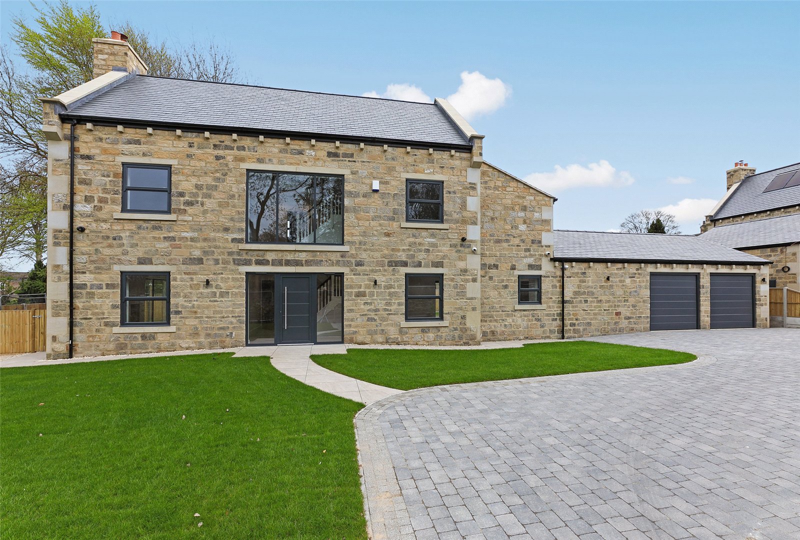Holroyd Miller have pleasure in offering for sale this newly constructed stone built detached family home offering flexible living accommodation over three levels. Located in the heart of Gomersal village, built in natural stone with blue slate roof. The well planned interior is built to a high specification including underfloor heating to the ground floor, oak internal doors, bi-folding doors leading off from the kitchen, log burner to the living room with patio doors leading onto the rear garden. The property briefly comprises entrance reception hallway with cloakroom/wc, spacious living room, separate study, open plan kitchen/diner/family room with adjacent utility room and larder, access to integral double garage. To the first floor, master bedroom suite with walk-in dressing room, ensuite, three further bedrooms and house bathroom. To the second floor, bedroom five with ensuite and home office/playroom. Outside, block paved driveway provides ample off street parking and leads to the integral garage, lawn gardens.