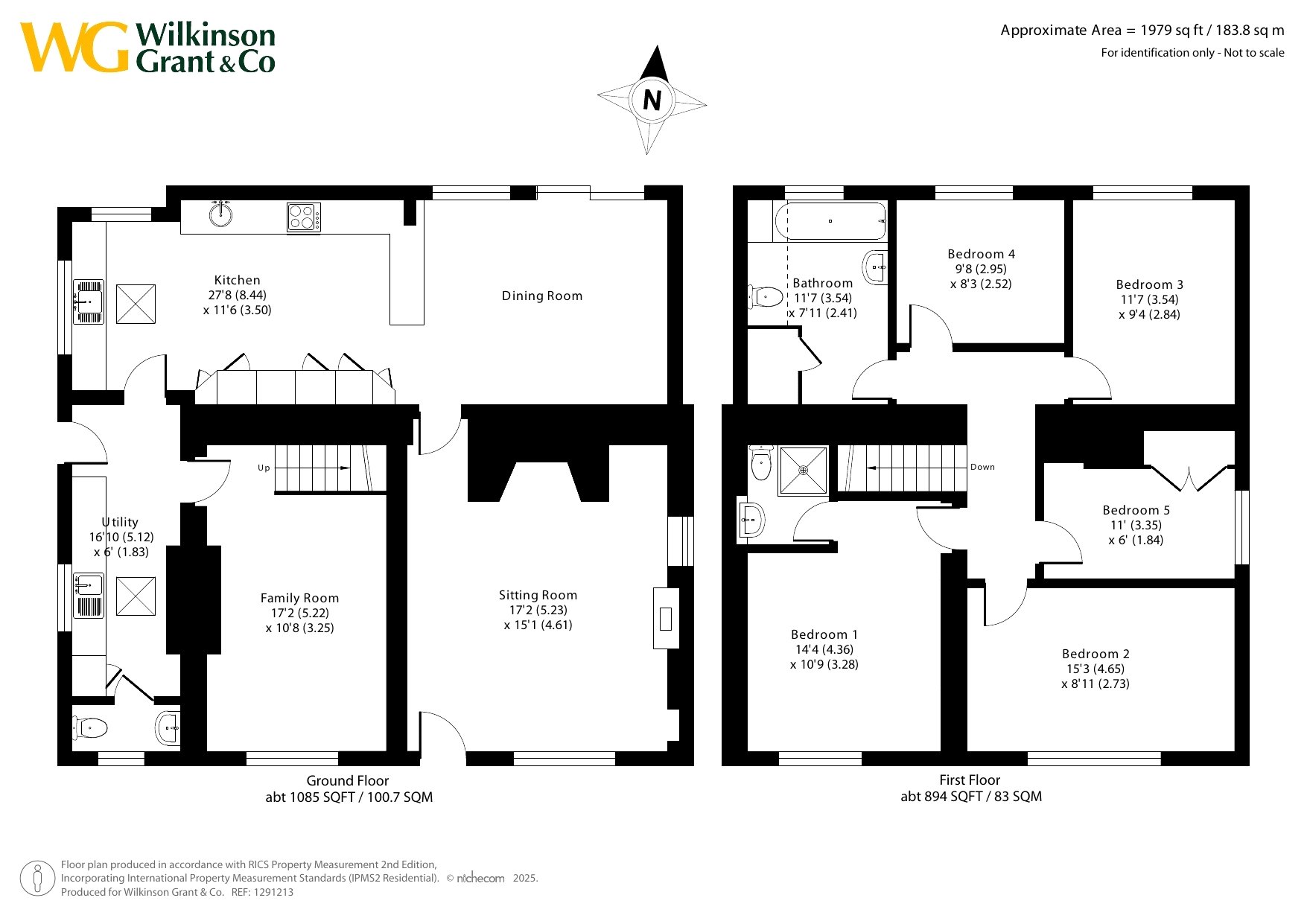 Upstairs, the property offers five bedrooms, the principal bedroom benefiting from a contemporary ensuite shower room. The remaining bedrooms share access to a modern bathroom equipped with a large airing cupboard, providing ample storage.