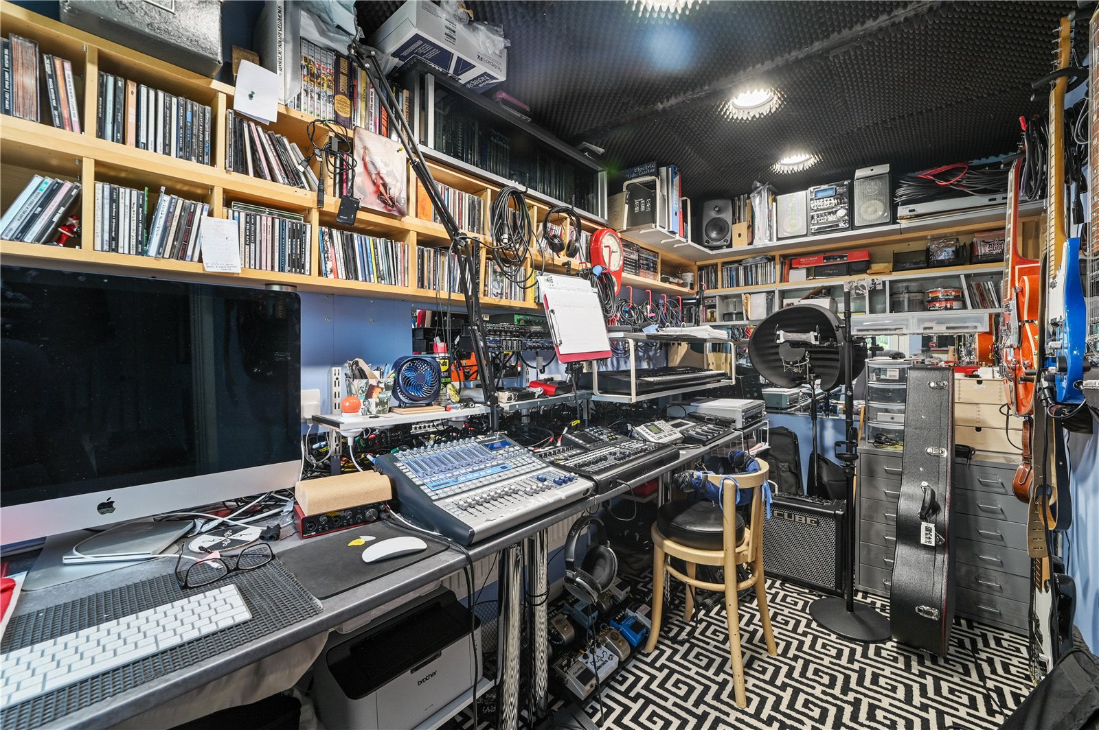 Completing the ground floor is a fully equipped studio space - currently arranged as a soundproofed workspace - offering excellent versatility for use as a creative studio, home office, or snug.
