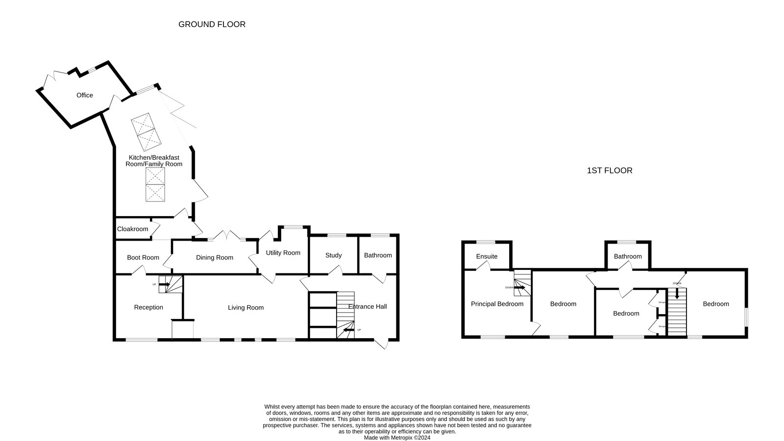 On the first floor, the principal bedroom, with its own access from the ground floor, benefits from an ensuite bathroom, and is a haven of relaxation, offering privacy and comfort.