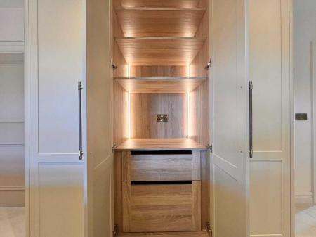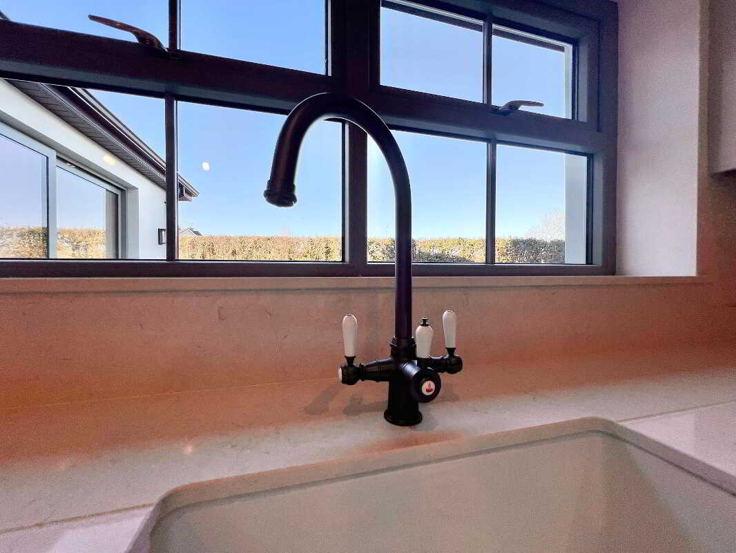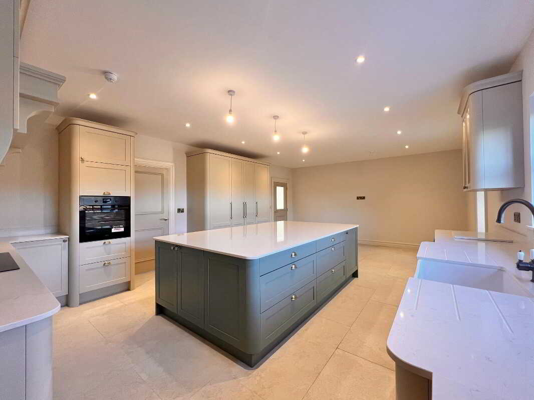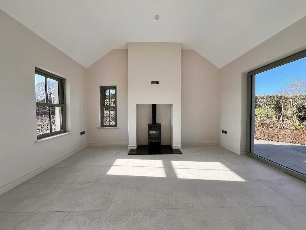 Entrance HallWith feature herringbone style laminate wood floor, wall panelling with feature lighting, cornicing, wall lights, recessed lights, storage cupboard.Living RoomWith feature herringbone style laminate wood floor, recessed lights, eye level tv point.Open Plan Kitchen & DiningAn excellent range of modern fitted units, Belfast sink and a large contrasting centre island/breakfast bar with consentino worktops, splashback and upstands. Integrated appliances include, a boiling water tap, AEG five-ring induction hob & electric oven, AEG dishwasher, integrated fridge and integrated freezer. Floor-to-ceiling pantry style units offer generous storage with feature lighting and electric. Recessed lights, tiled floor, dining area with eye level tv point.PantryAn excellent range range of modern fitted units and shelving, floor fully tiled.SunroomWith feature vaulted ceiling, tiled floor, wood burning stove, eye level tv point, large sliding doors to patio paved area.Utility RoomWith eye & low level units, stainless steel sink and drainer unit, plumbed for washing machine, space for tumble dryer, recessed lights, floor fully tiled.WcContemporary two piece white suite comprising of wc, wall hung vanity and basin, illuminated mirror, recessed lights, floor fully tiled.Master Bedroom (En-Suite & Dressing Room)With laminate wood floor & dressing room.