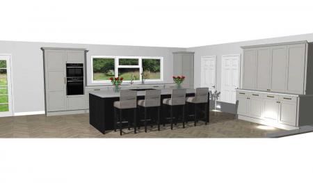 Nestled in a serene setting, every detail of this property has been meticulously designed to offer the pinnacle of modern and luxury living. The 4500sqft detached residence located on a prime edge of town site, offers a balance of convenience to Town Centre and near by country environment. It is close to the main road links from Cookstown to Magherafelt and onto the M2 Belfast. Countryside living within the town limits.KitchenBespoke kitchen with full sized island open to family dining room.