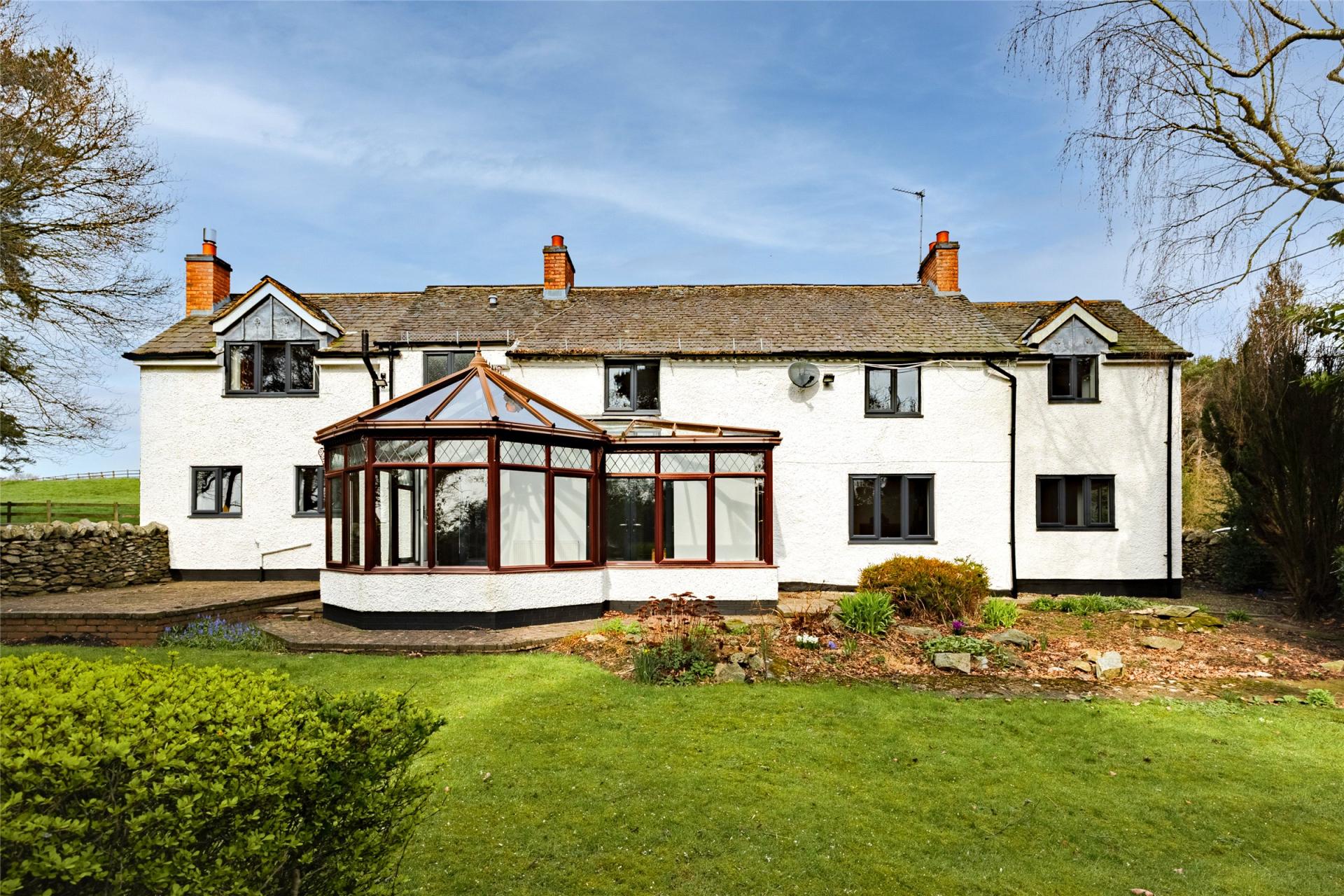 A period five bedroomed detached cottage with striking white exterior and Swithland slate roof with formal gardens surrounding the property, two stables and tack room with paddock land and woods extending to 2.12 acres. Having central heating and double glazing, the spacious internal accommodation contained on two floors comprising entrance into hallway, open-plan living/dining kitchen, utility room and downstairs cloakroom, garden room, lounge, sitting room and dining room. On the first floor the landing leads to five generous bedrooms and a principal family bathroom. Bedroom one with en-suite wet room, bedroom two with en-suite shower room and a feature balcony with views to the gardens. Electric gated access leads to sweeping gravelled driveway with numerous car standing, double open car port, two stables, tack room and rear private orchard. Viewing is highly recommended.