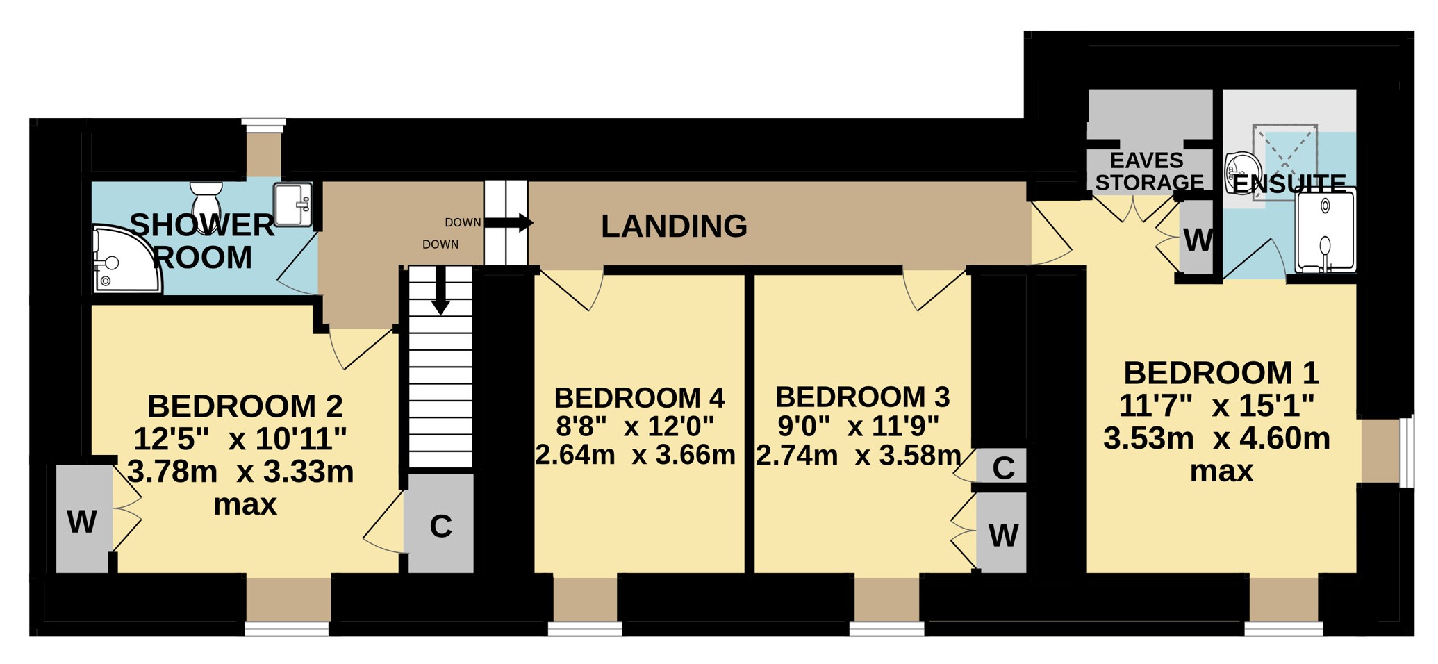 - Four bedrooms