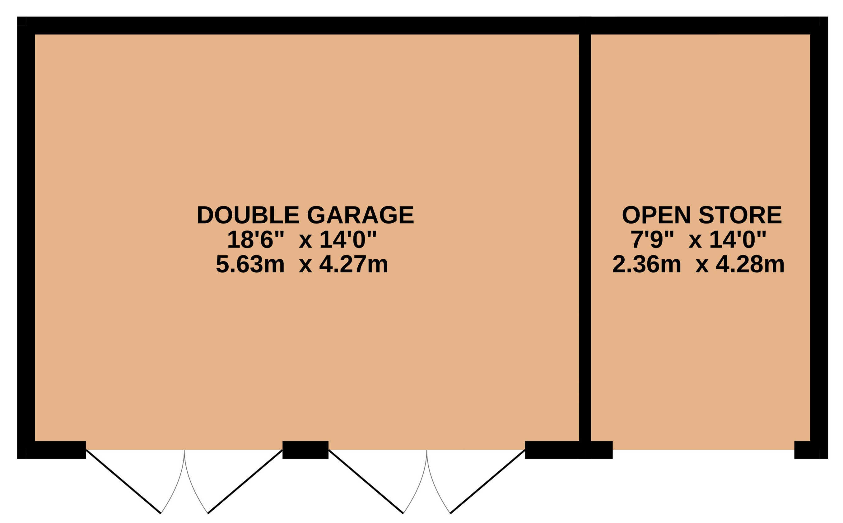 Double Garage 18'6" x 14' (5.64m x 4.27m).
