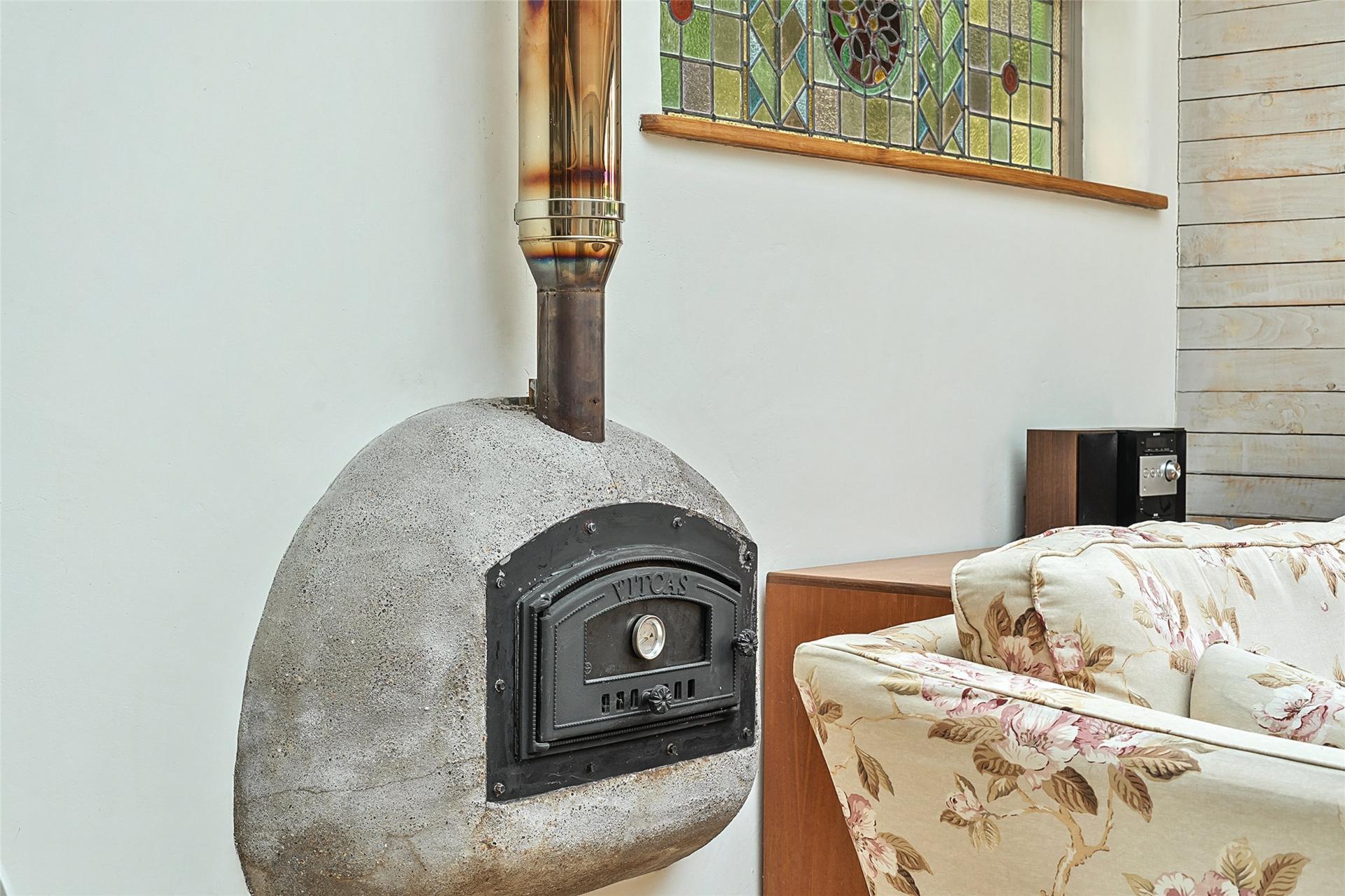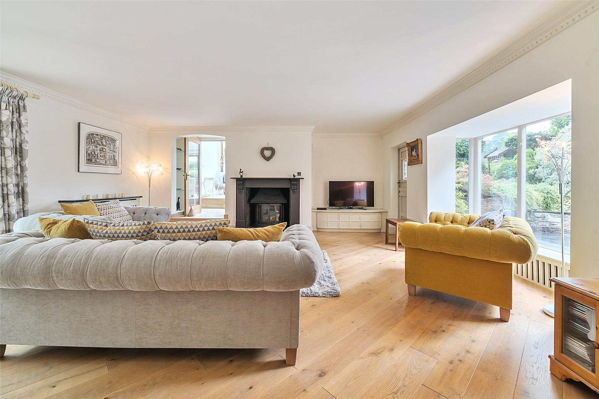 The second residence, accessed via its own private entrance, is equally generous in scale and beautifully appointed. The main reception room measures 22' x 21' and features a central glass-topped wine cellar as its unique centrepiece, alongside a wood-burning stove. This leads through to a spectacular garden room with an atrium-style glazed roof and concertina doors opening onto the westerly gardens. A compact hidden kitchen and pizza oven make this a perfect space for entertaining. The large L-shaped kitchen/dining room is fitted with a range cooker and opens to a private patio. A utility room and WC complete the ground floor. Upstairs are two spacious en suite bedrooms.